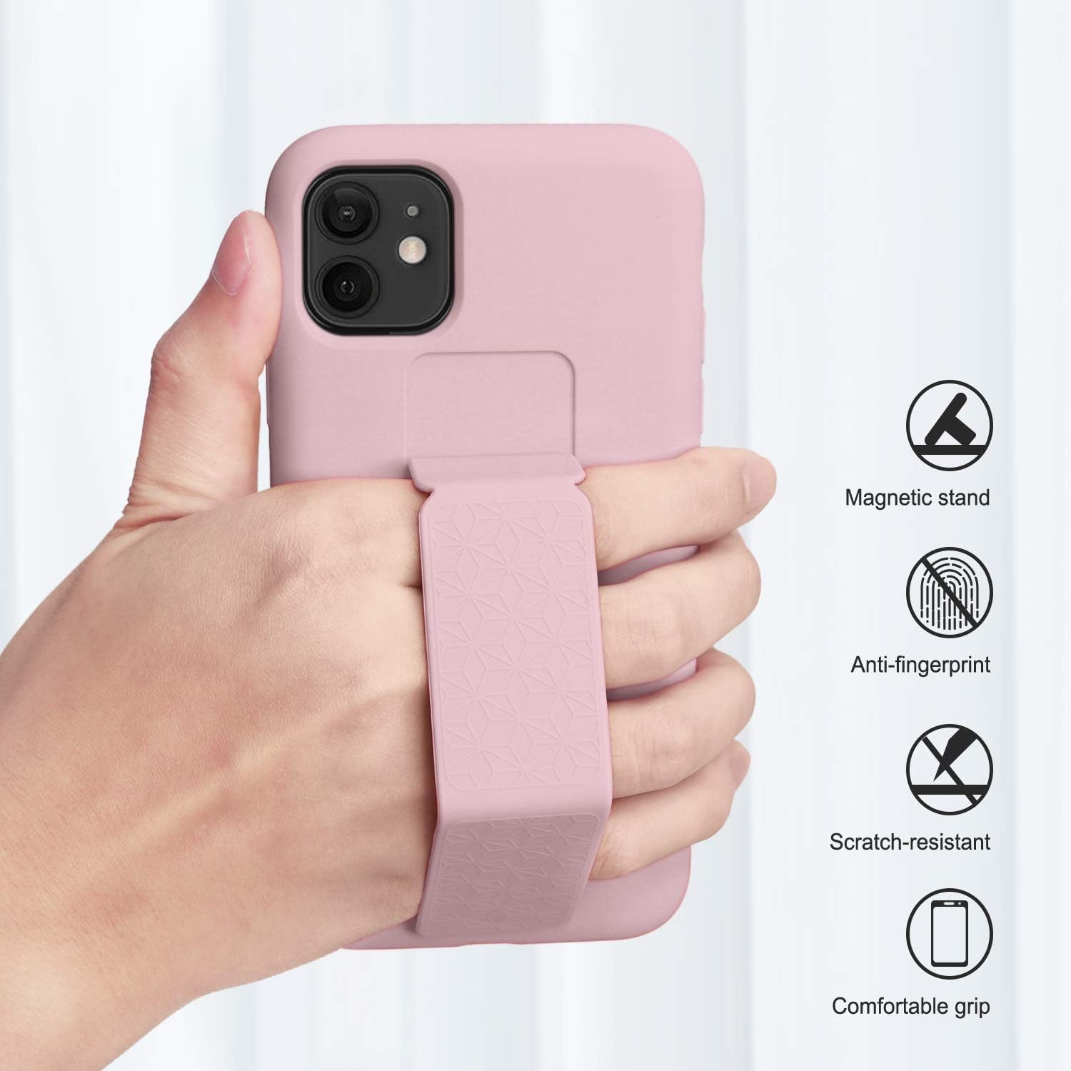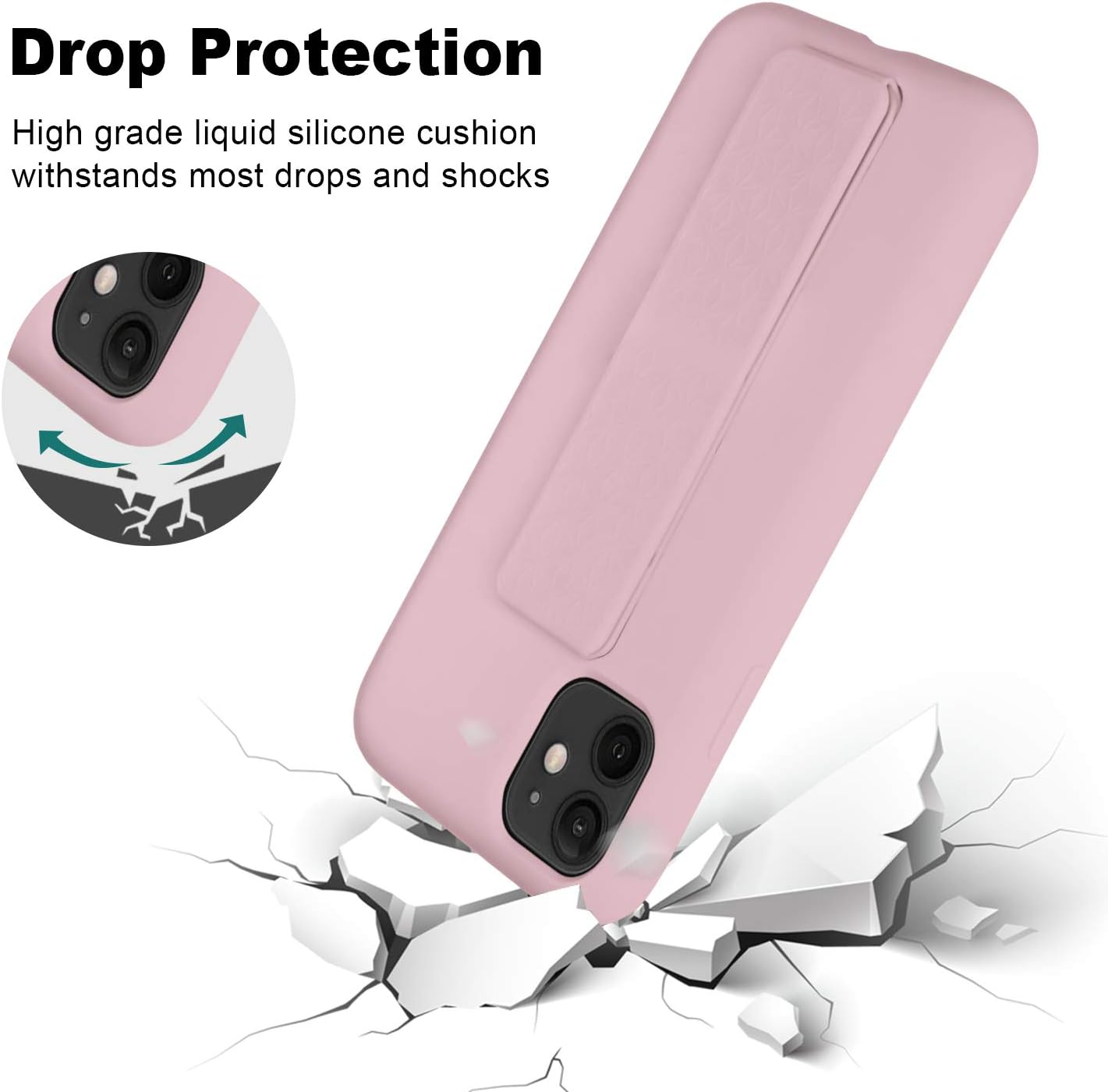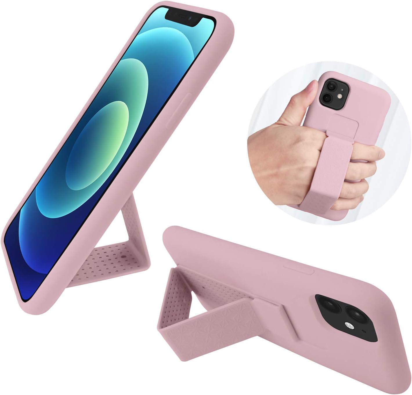 LAUDTEC Capa de silicone com suporte compatível com iPhone 11, suporte vertical e horizontal, alça de mão, suporte de metal, capa flexível de silicone líquido macio para iPhone 11 (rosa)