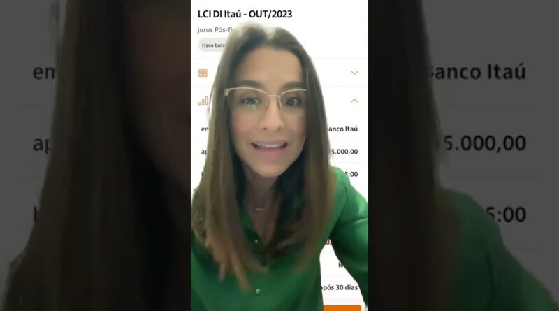 LCI do Banco Itaú (muito seguro) com liquidez diária pós 90 dias e rentabilidade de 96,5% do CDI!