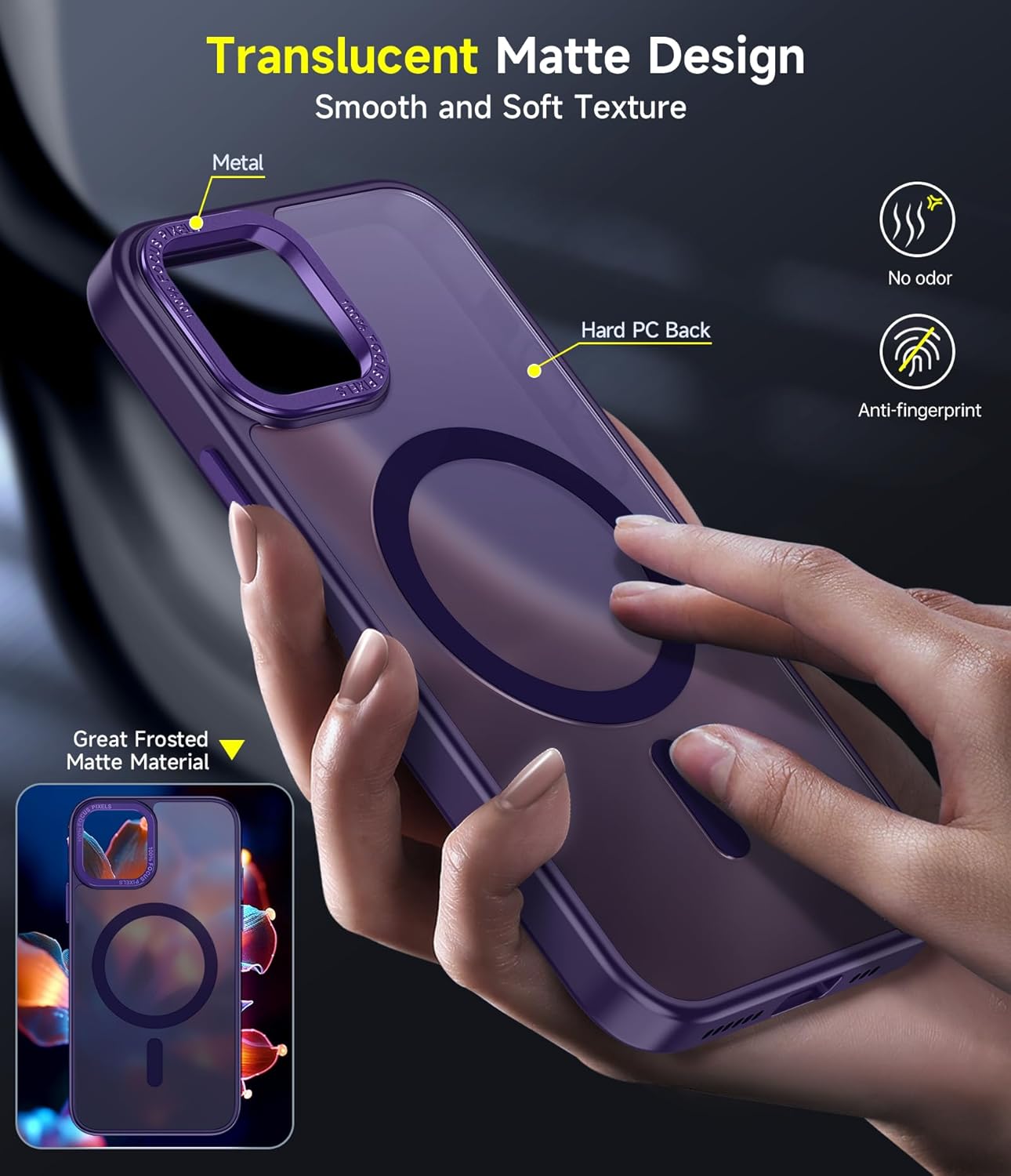 【Pacote completo de defesa 5 em 1 para iPhone 11 Pro Max】A capa roxa magnética para iPhone 11promax absorve o choque de quedas diárias, o vidro temperado 2X 9H protege contra arranhões e rachaduras, e 2 protetores de lente protegem a lente contra quebras. Tudo o que é necessário em uma caixa — sem necessidade de compras adicionais