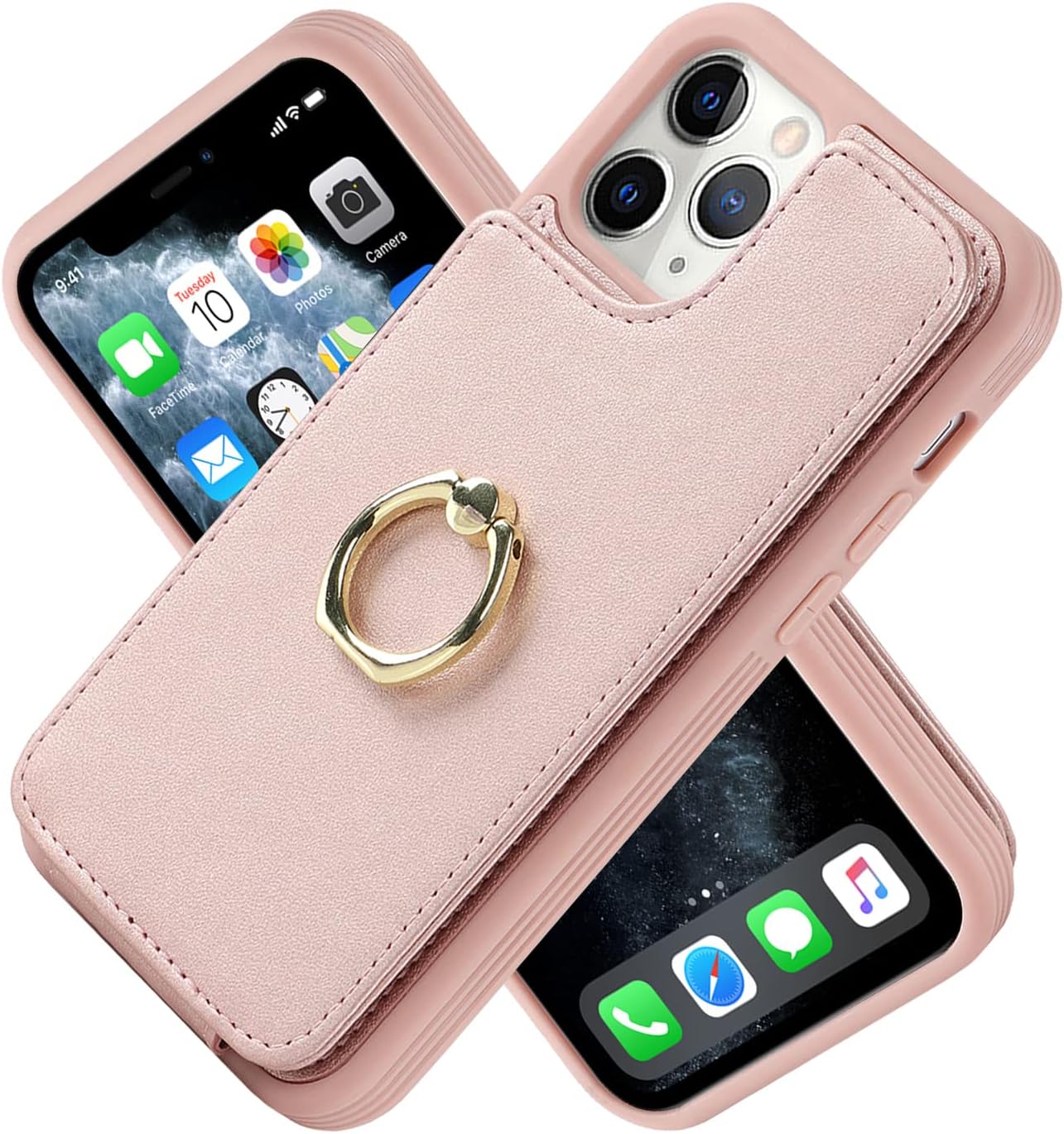 Lipvina Capa para iPhone 11 Pro Max com porta-cartão, suporte para cartão de crédito, suporte de anel, capa carteira de telefone fofa à prova de choque para mulheres (6,5 polegadas, ouro rosa)
