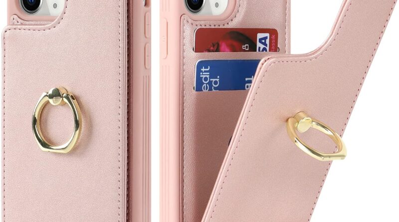 Lipvina Capa para iPhone 11 Pro Max com porta-cartão, suporte para cartão de crédito, suporte de anel, capa carteira de telefone fofa à prova de choque para mulheres (6,5 polegadas, ouro rosa)