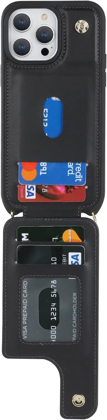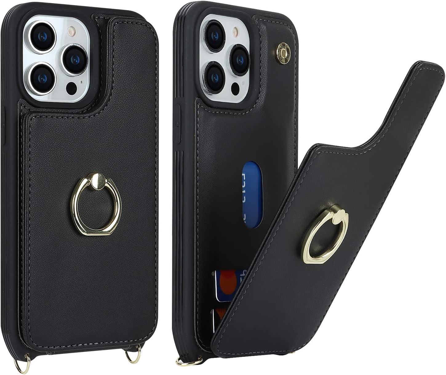 Lipvina Capa para iPhone 13 Pro Max/iPhone 12 Pro Max com suporte para cartão para mulheres, cordão de alça transversal, suporte para cartão de crédito, suporte de anel, fecho de pressão, linda capa