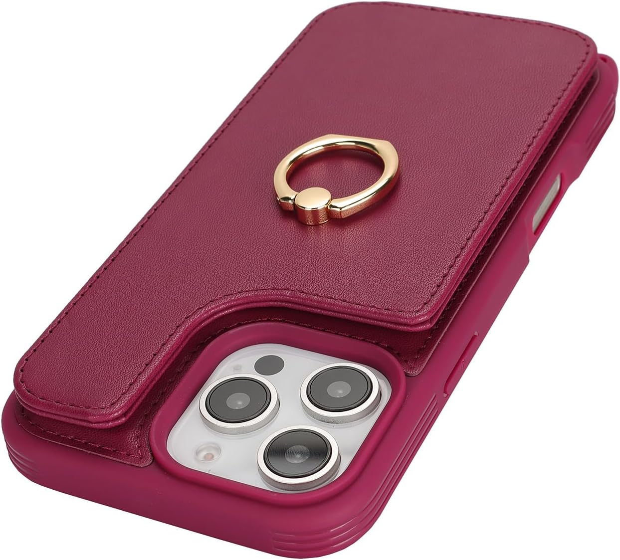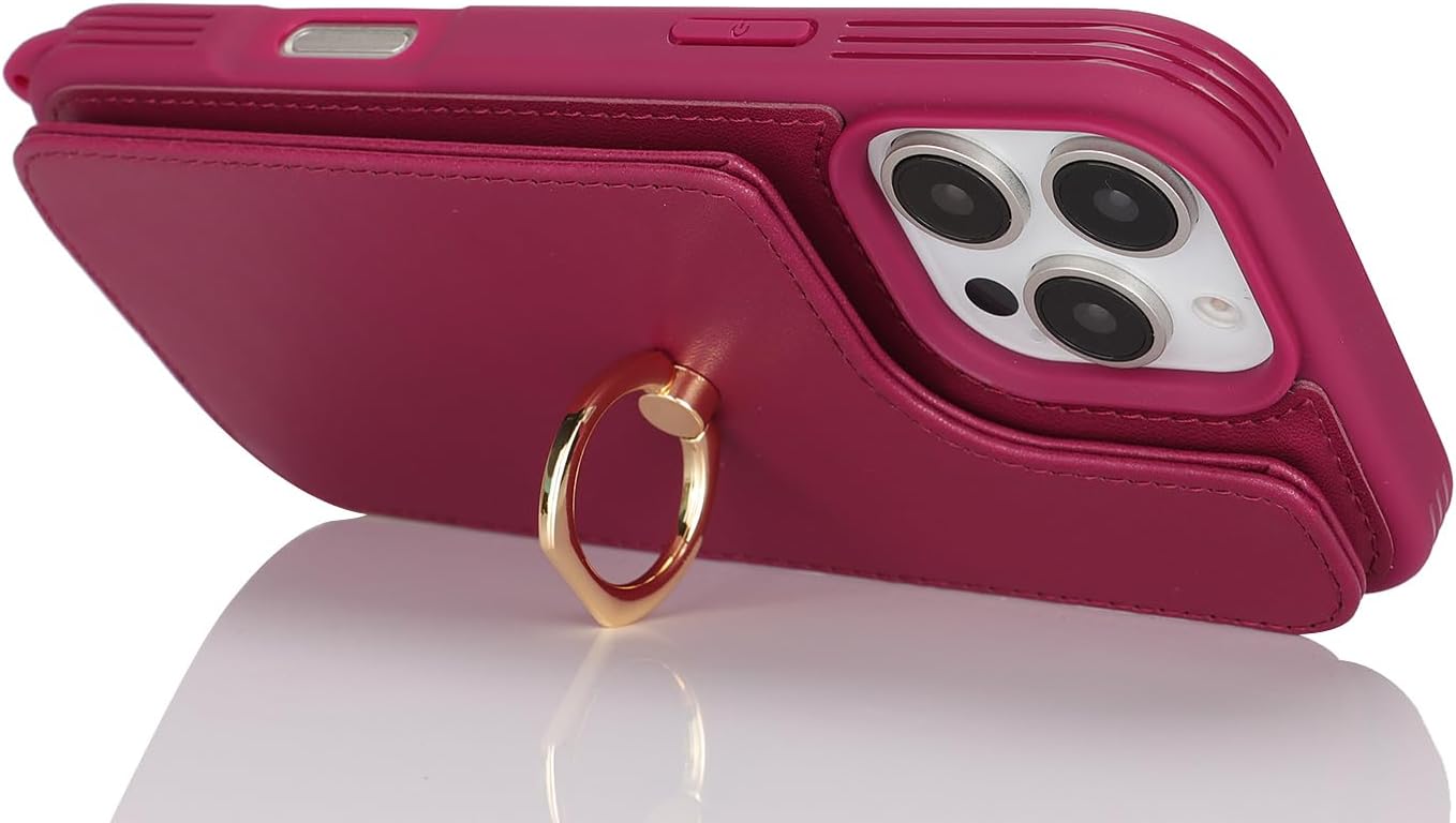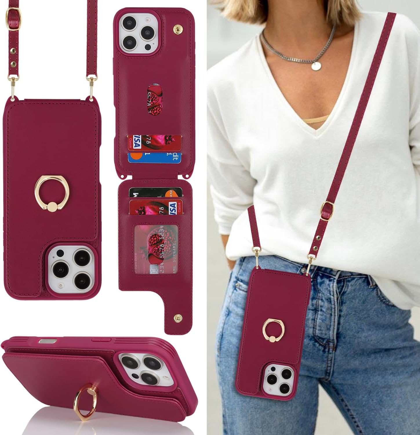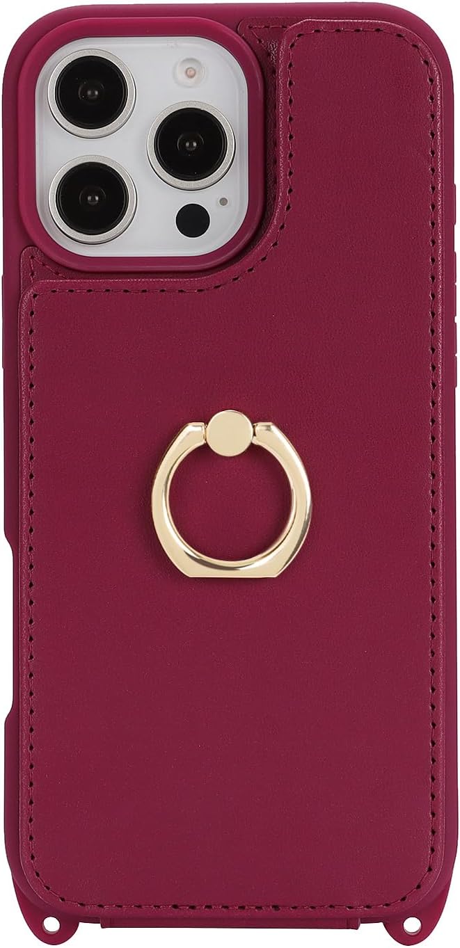 Lipvina Capa para iPhone 16 Pro Max com suporte para cartão e alça para mulheres, cordão transversal, suporte de anel, fecho de pressão, capas de carteira de telefone fofas de 6,9 polegadas (vermelho)