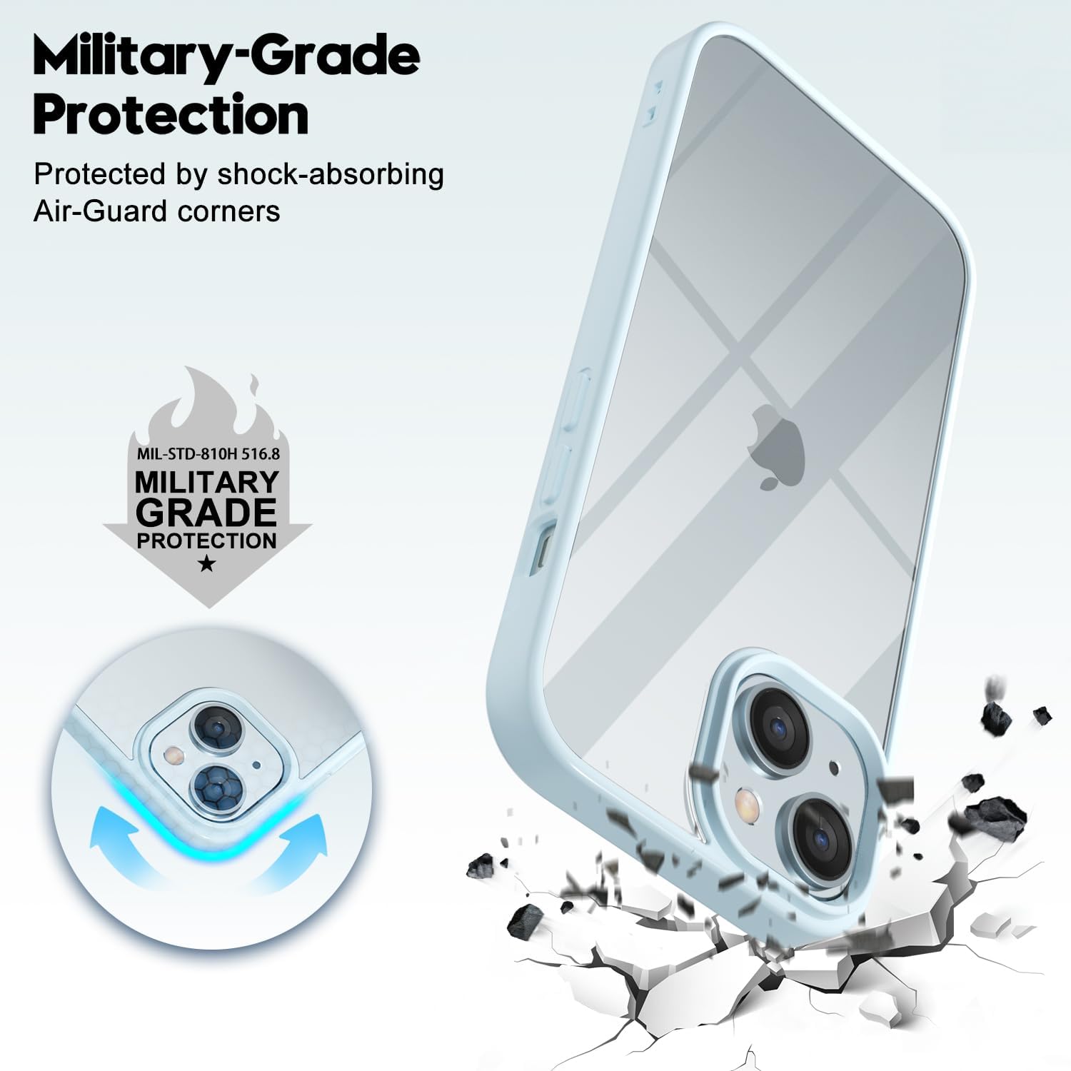LoeoeL Capa para iPhone 13 transparente, híbrida 13 [plástico rígido e amortecedor de silicone macio] Capa protetora fina fina acrílica não amarelada para mulheres, azul claro