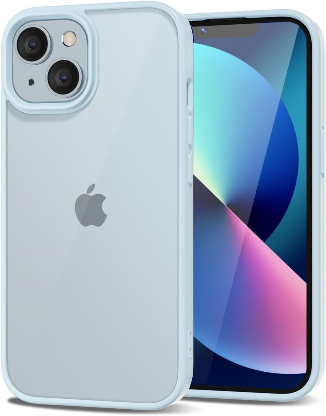 LoeoeL Capa para iPhone 13 transparente, híbrida 13 [plástico rígido e amortecedor de silicone macio] Capa protetora fina fina acrílica não amarelada para mulheres, azul claro