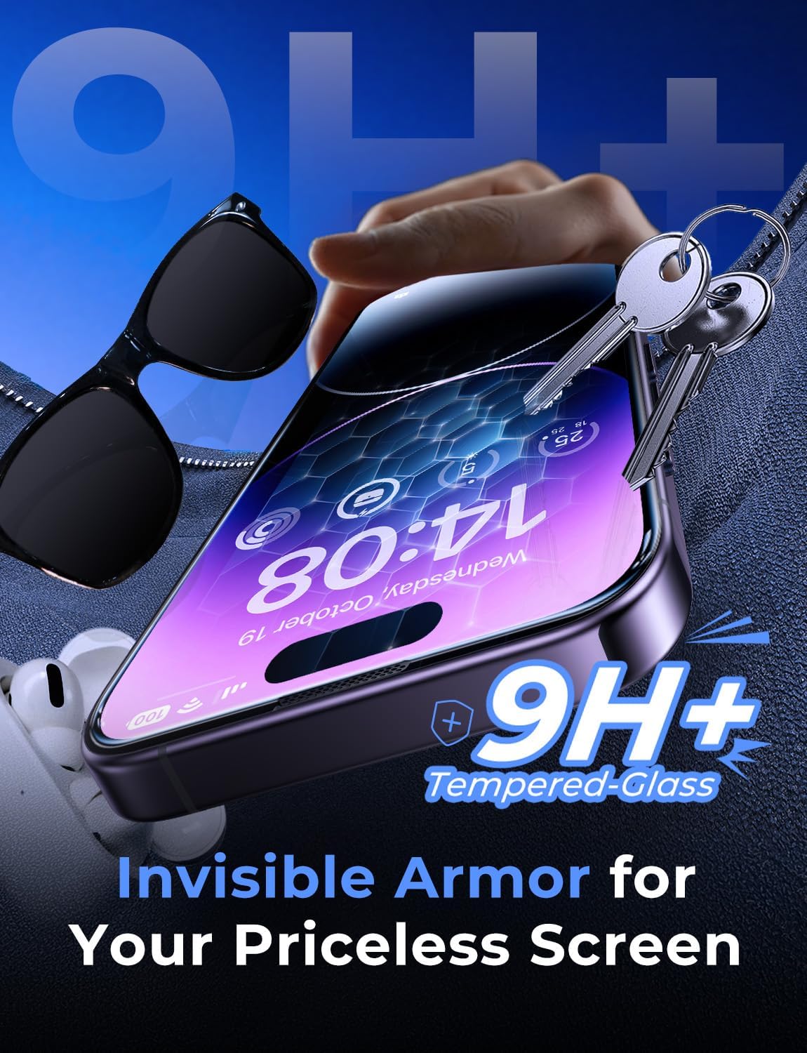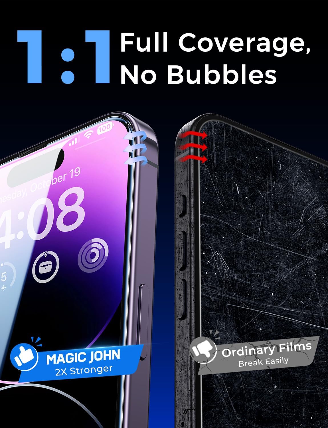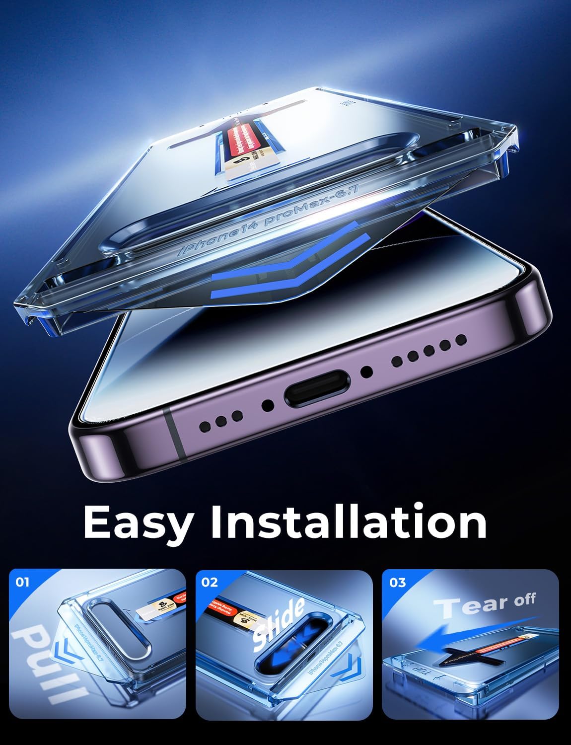 [Antidigitais] O protetor de tela de vidro temperado Magic John para iPhone 14 Pro Max de 6,7 polegadas é finalizado com revestimento oleofóbico contra resíduos de óleo das impressões digitais de uso prolongado.