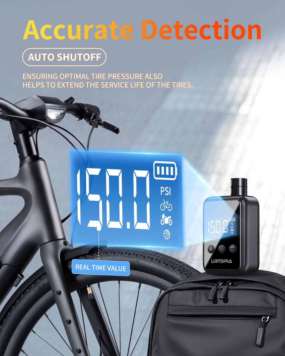 Automatic Shut-off and Accurate Pressure Monitoring – Precise inflation is yours with Urtopia’s smart auto-shutoff feature. Set your desired PSI, stopping inflation the moment your tire reaches the perfect pressure. This not only ensures a perfect tire pressure every time but also helps in extending the life of your tires.