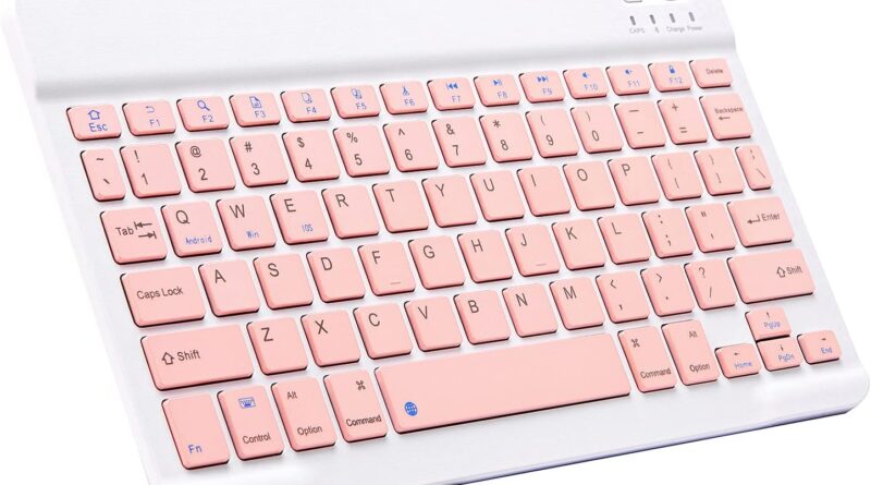 Mini teclado Bluetooth ultrafino portátil recarregável para Apple iPad, iPhone, Samsung, tablet, smartphone, iPadOS, iOS, Android (10 polegadas rosa)