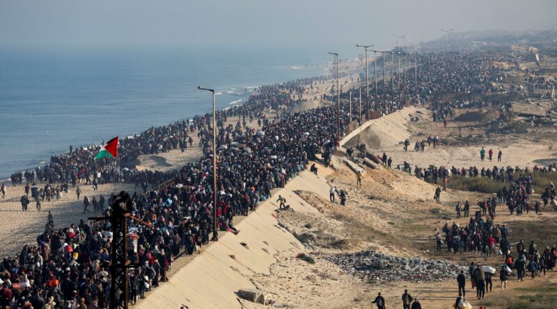 Milhares de palestinos retornam ao norte da Faixa de Gaza em 27 de janeiro de 2025.