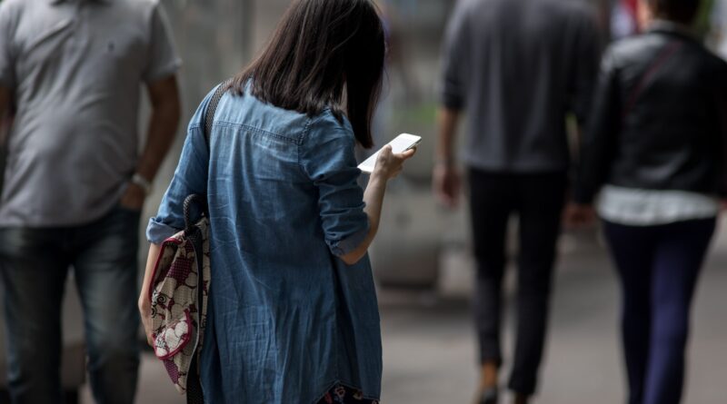 Mulher observa o celular na avenida Paulista, em São Paulo
