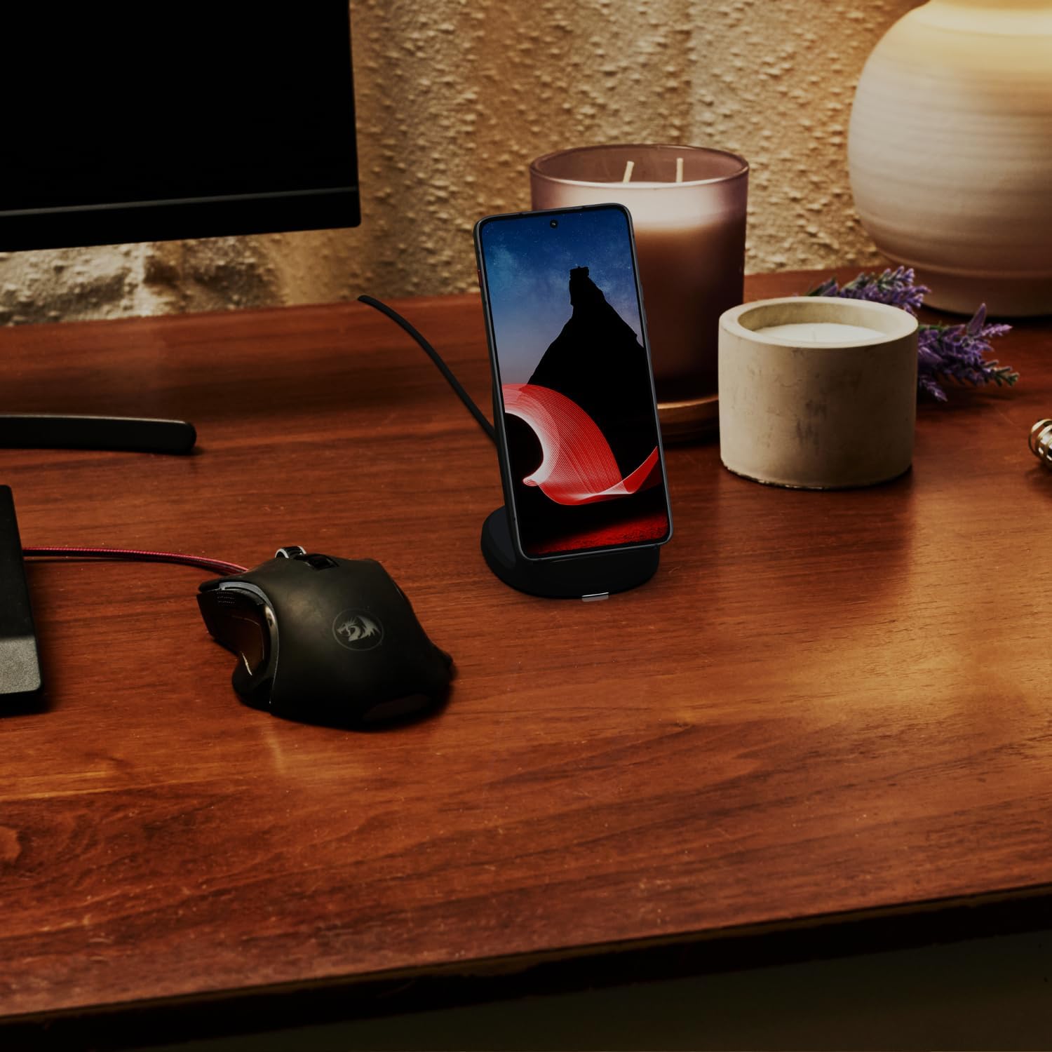 ngulo de visão ergonômico: Verifique notificações ou assista vídeos enquanto o seu smartphone carrega, graças ao ângulo de visão confortável do suporte.