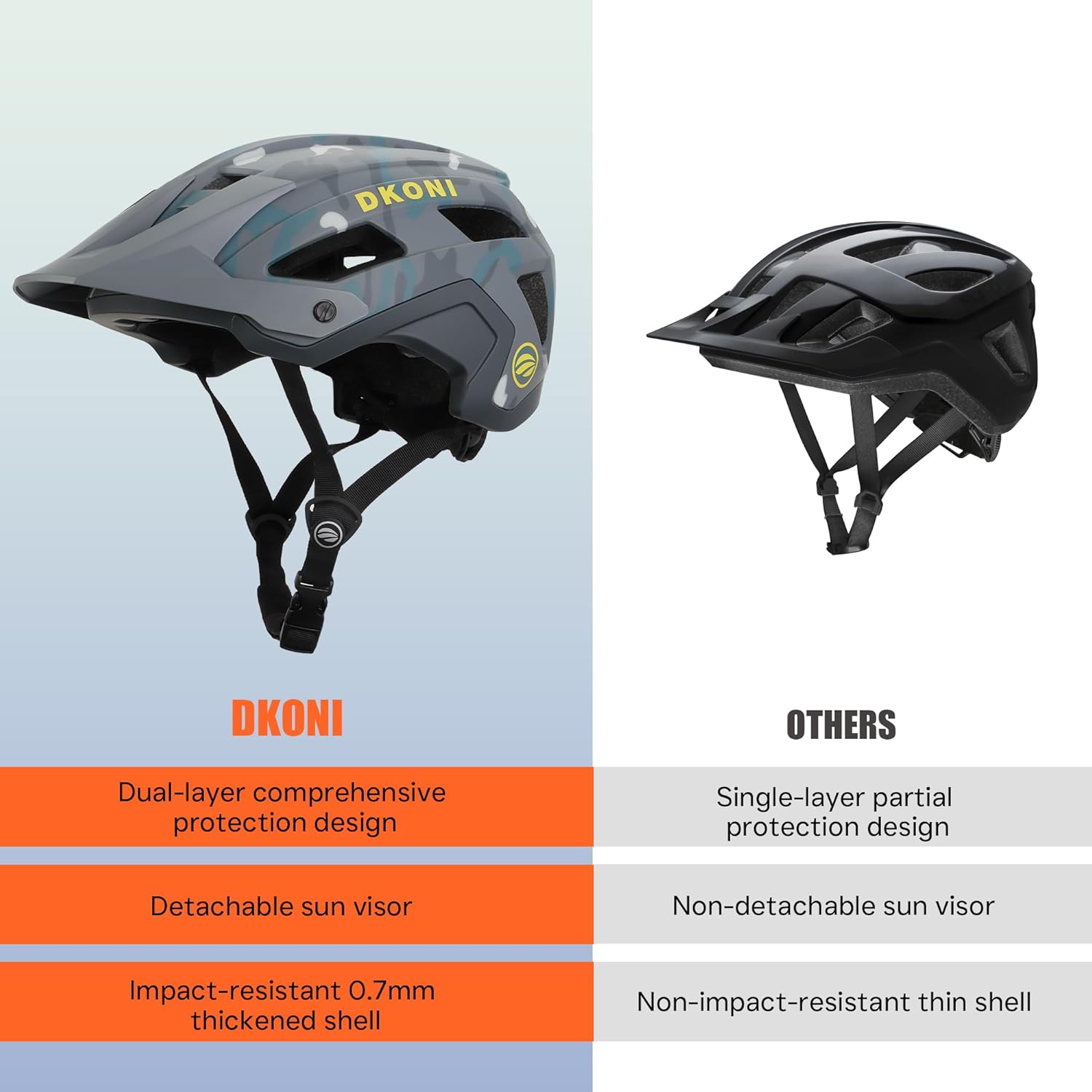 【Equipped with Removable Large Visor】Mountain bike helmet features a large visor that extends twice as far as other helmets. Made of ABS material, it is more durable and protects your eyes from sunlight, rain, mud, and branches, enhancing the riding experience and adapting to different environmental needs.