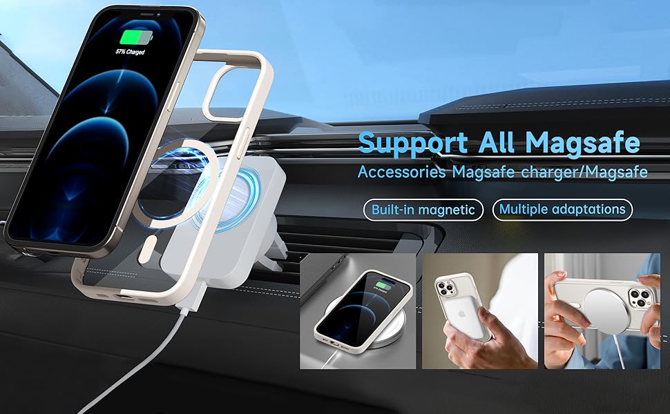 👍 Magnético forte. 24 ímãs N52 embutidos, compatíveis com a maioria dos acessórios Magsafe, como carregadores de carregamento sem fio, carteiras magnéticas, suportes magnéticos e suportes magnéticos para carros.
