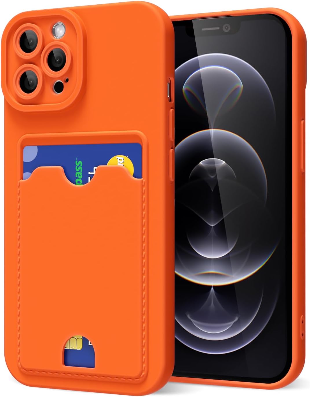 oakxco Capa para iPhone 12 Pro com suporte para cartão, linda capa de telefone carteira de silicone com compartimento para cartão de crédito, bolsa fina de borracha macia para mulheres e homens com