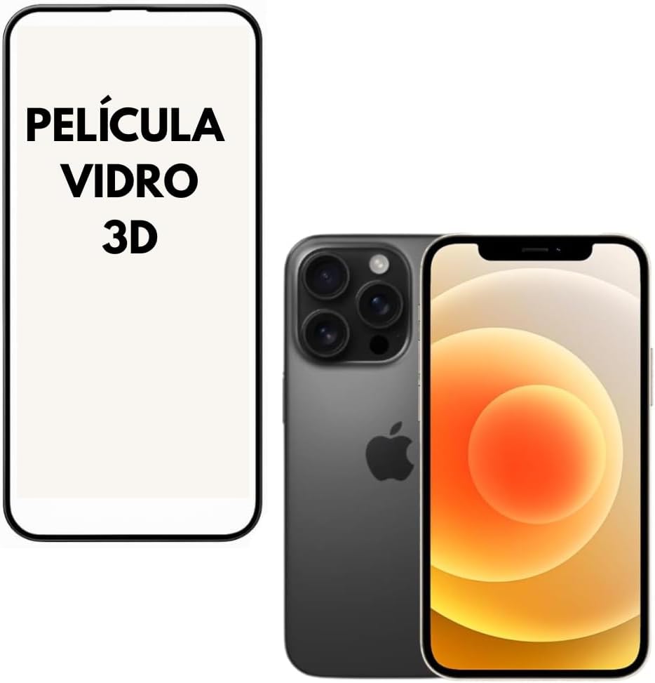 Película 3D VIDRO GROSSA Protetora de Tela Anti-riscos queda Proteção Total Compatível com Celular IPHONE X/11/12/13/14/15/16E PRO MAX (15/ 15PRO)