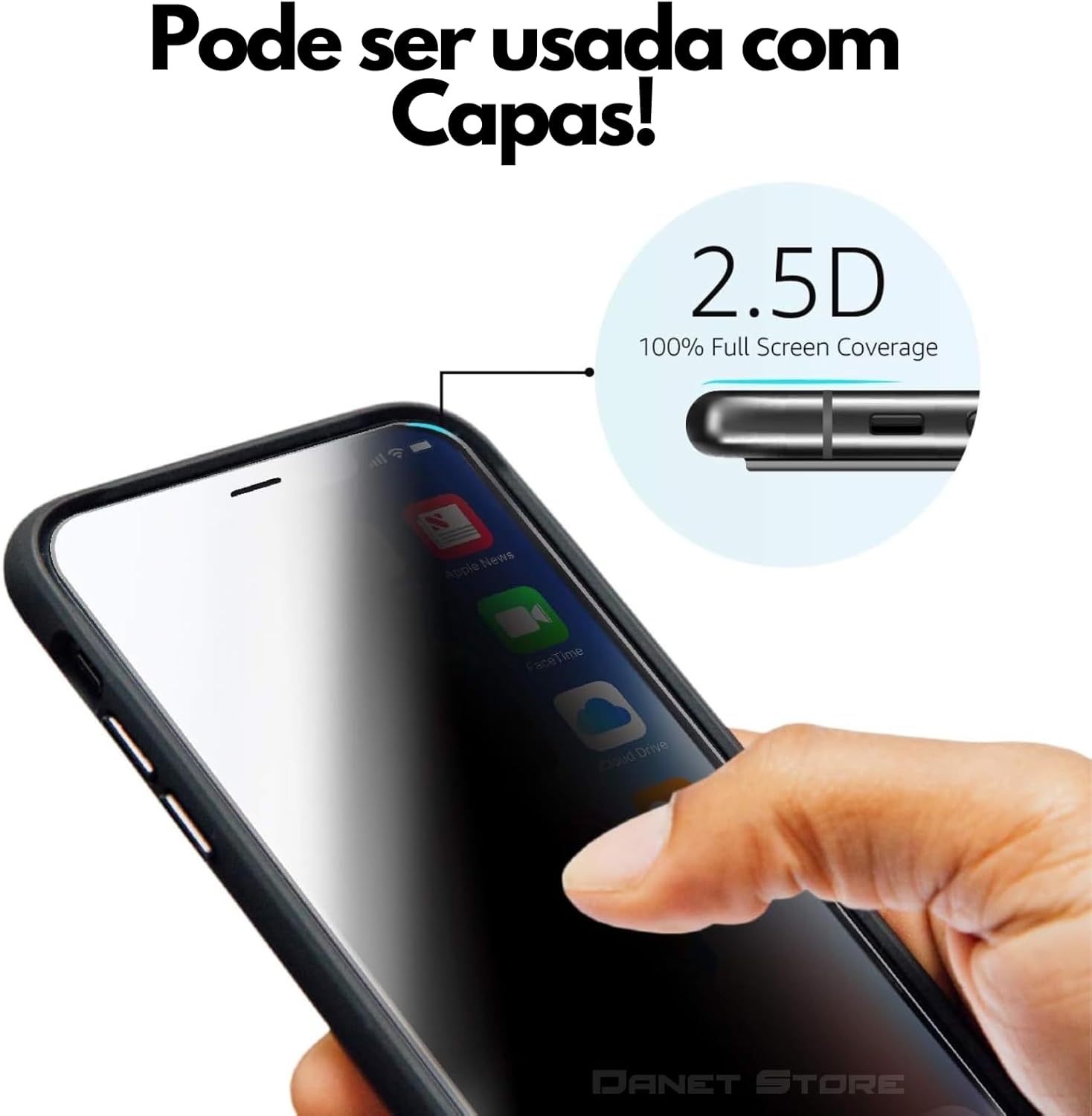 Película De Privacidade Vidro Temperado Para iPhone 16, 16 Plus, 16 Pro, 16 Pro Max Polegadas – Proteção Anti Impacto E Curioso Top Spy Premium – Danet (iPhone 16 Pro)