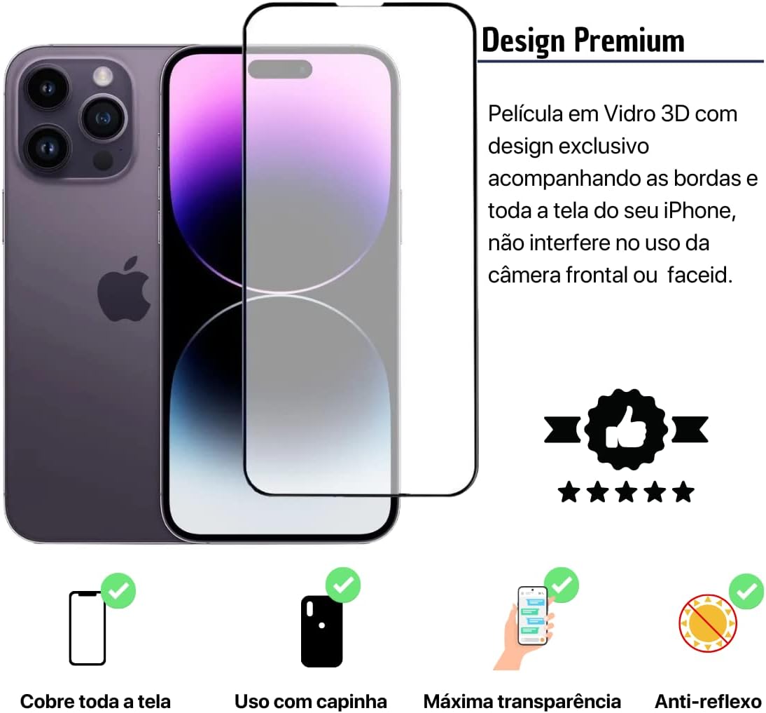 Película De Vidro 3D Tela Toda Para iPhone + Capa Capinha Case (iPhone 14 Pro Max)