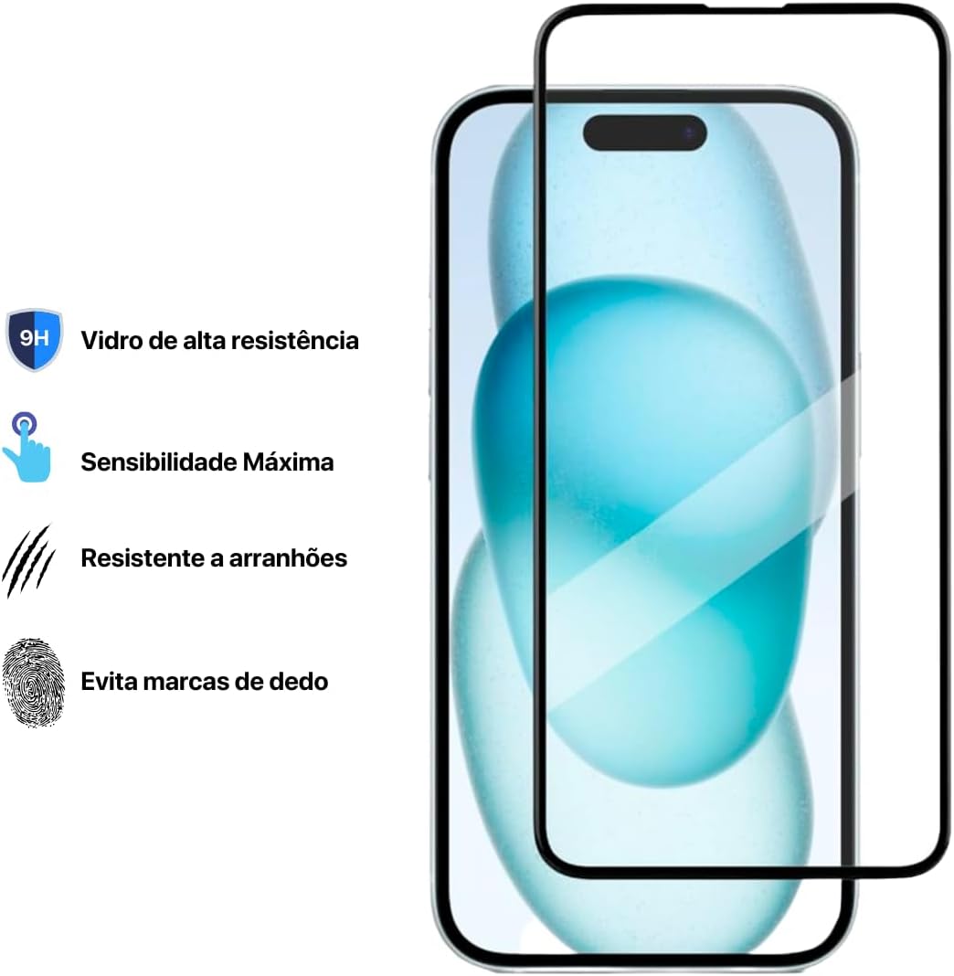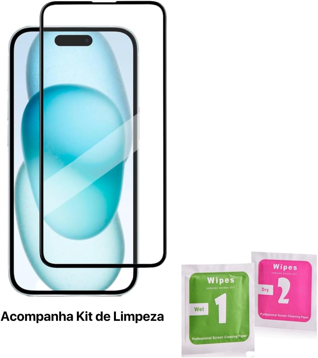 Película De Vidro 3D Tela Toda Para iPhone (iPhone 15/15 Pro)