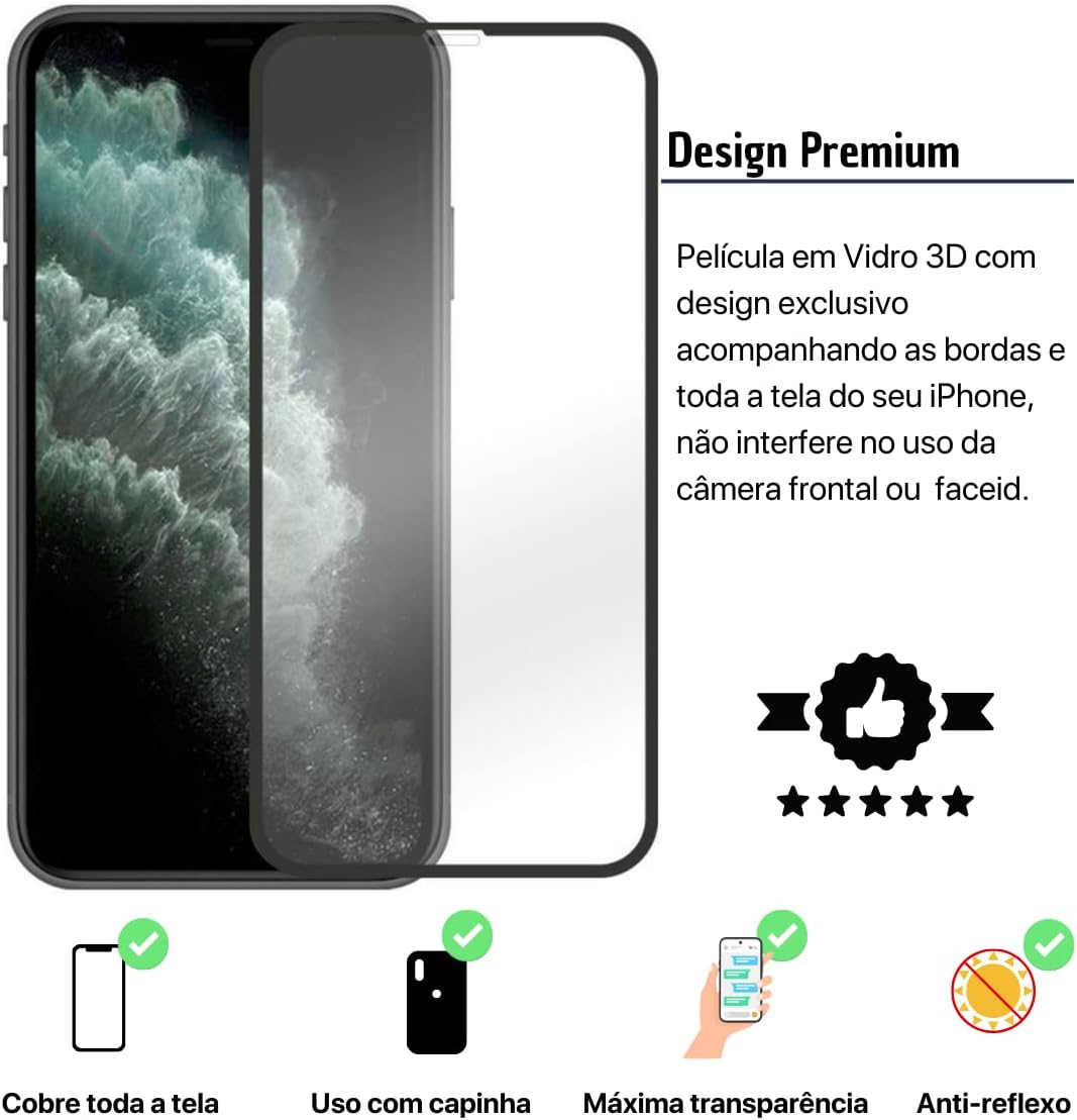 Película De Vidro 3D Tela Toda Para iPhone + Película Lente de Câmera (iPhone 11 Pro Max)