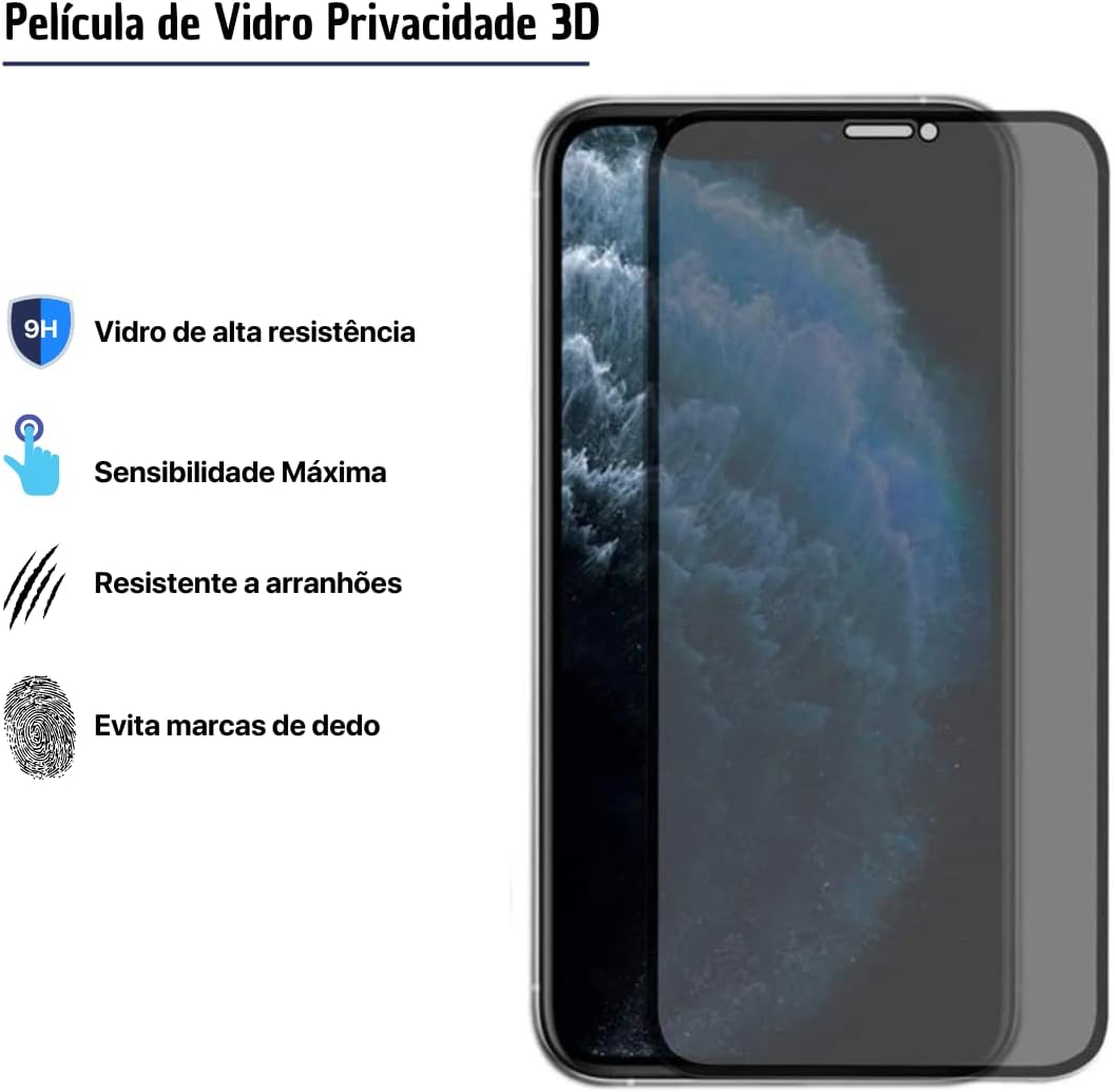 Película De Vidro Privacidade 3D Anti Spy Tela Toda Para iPhone + Capa Capinha Case (iPhone 11 Pro Max)