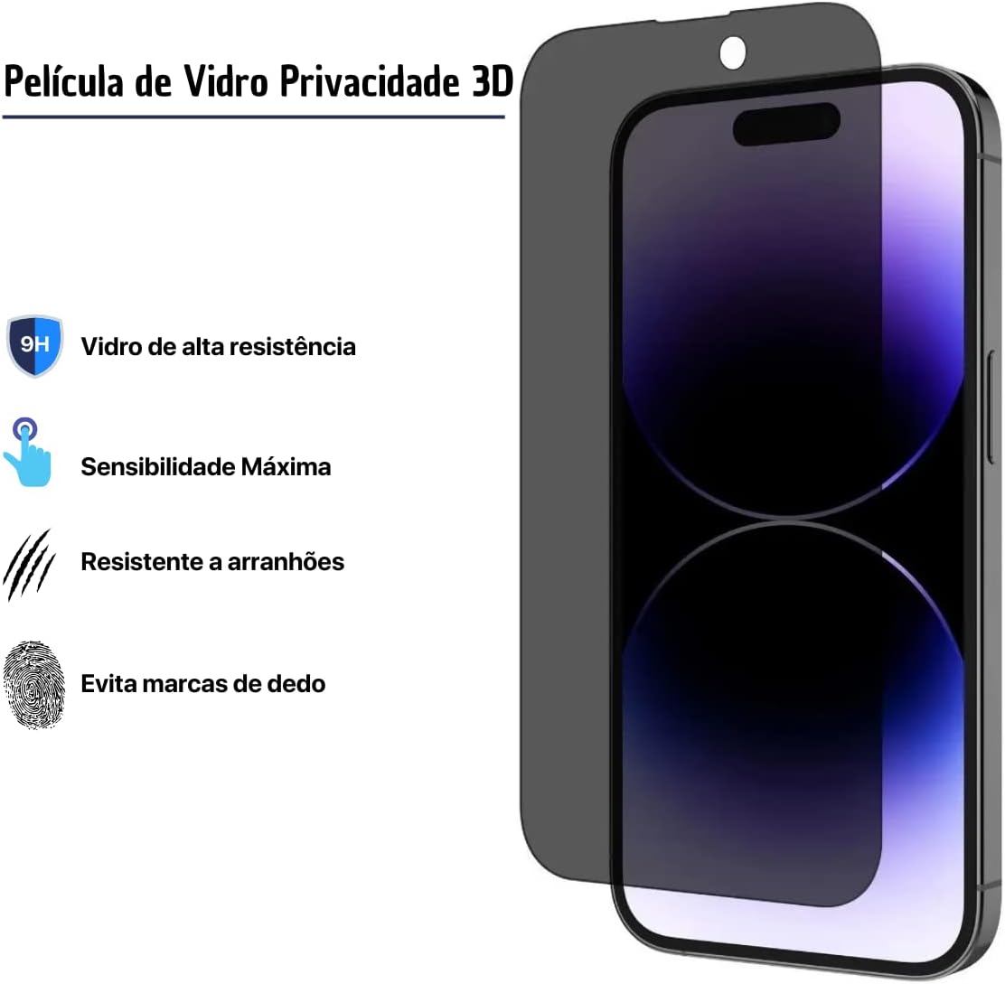 Película De Vidro Privacidade 3D Anti Spy Tela Toda Para iPhone + Capa Capinha Case (iPhone 14 Pro Max)