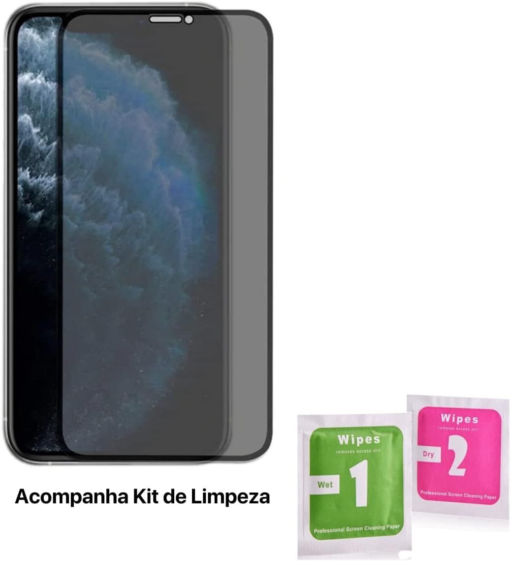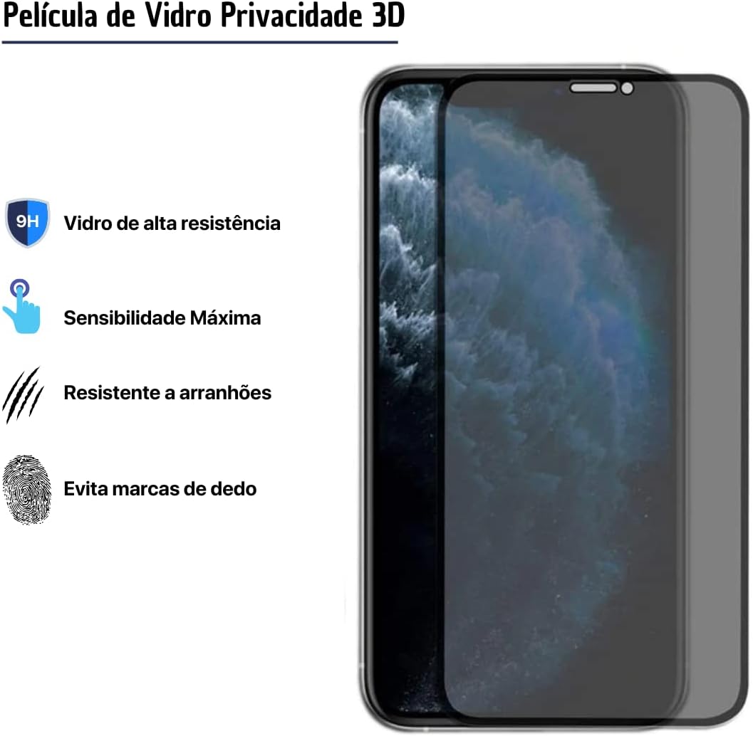 Película De Vidro Privacidade 3D Anti Spy Tela Toda Para iPhone + Película Lente de Câmera (iPhone 11 Pro Max)