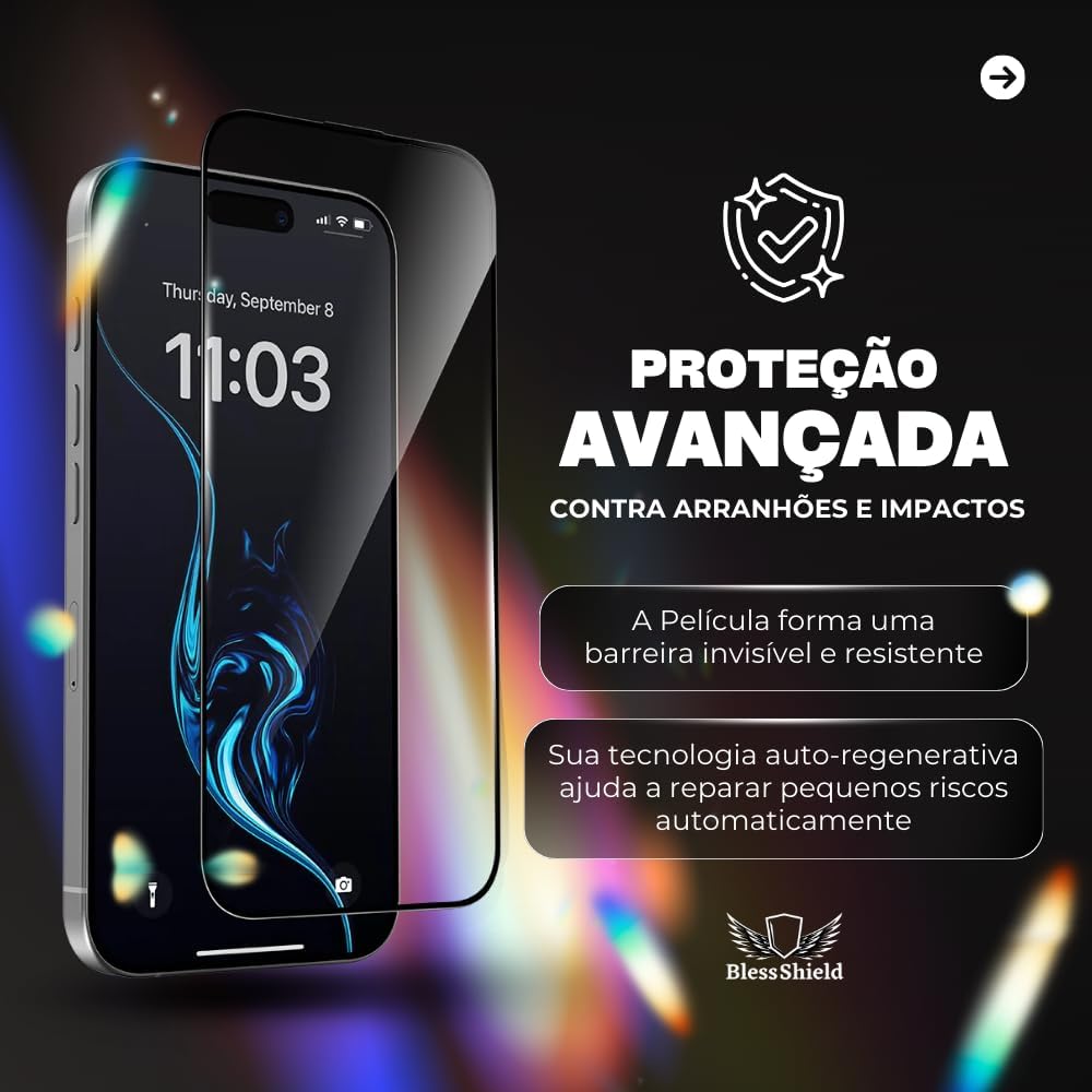 Película Hydrogel Privacidade para iPhone SE e 11 Até o 14 Pro Max – BlessShield Cobertura Total (iPhone 14 Pro Max)