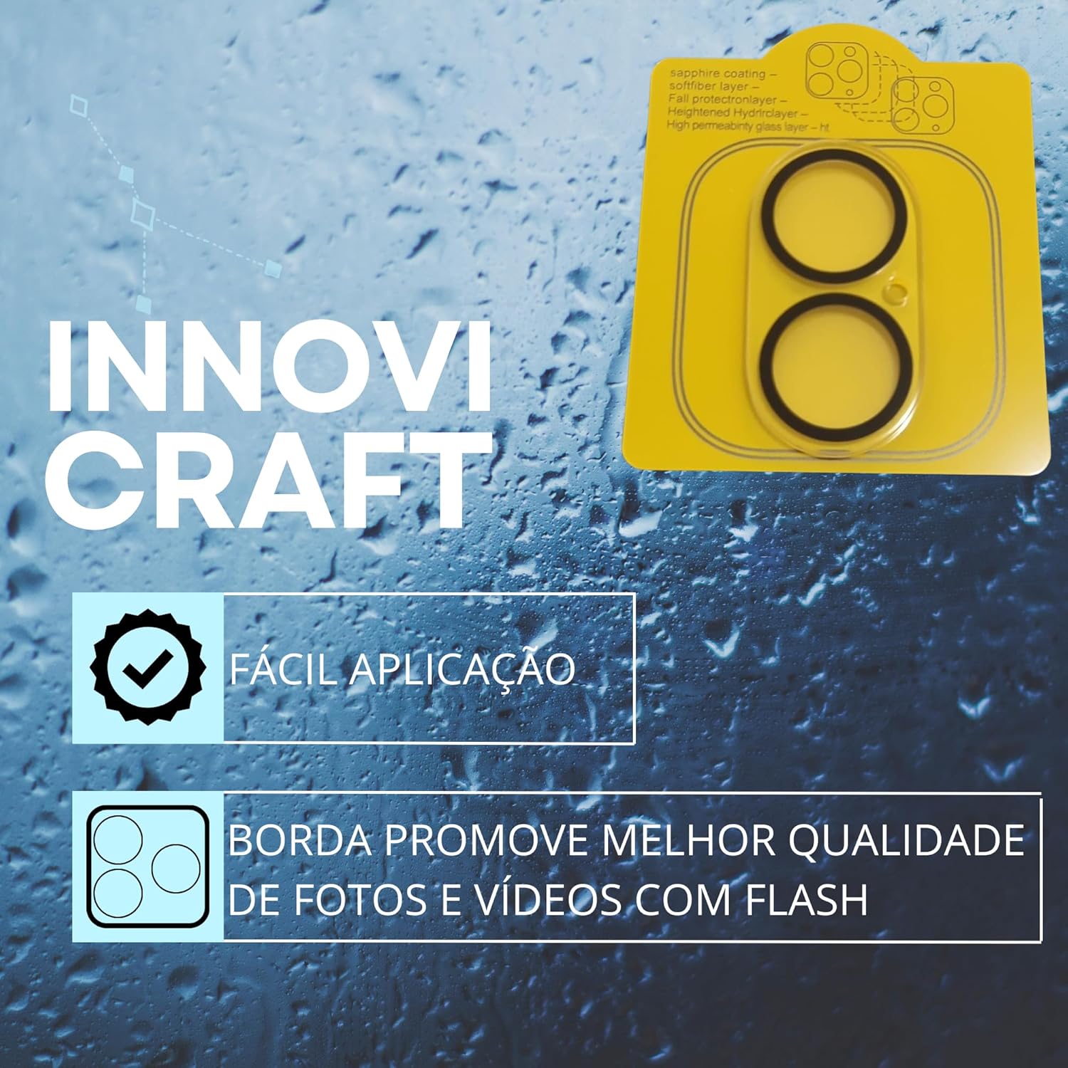Película para câmera do celular compatível com Iphone INNOVI CRAFT (IP 16 / IP 16 PLUS)