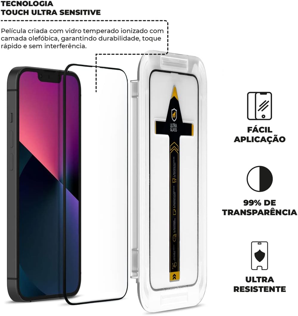 Com uma bandeja de alinhamento exclusiva, tornando a aplicação ainda mais prática e precisa. Com esse recurso, a película se encaixa perfeitamente na tela do seu celular, garantindo que ela fique no lugar certo, sem erros. A praticidade do processo permite que qualquer pessoa aplique a película com facilidade.