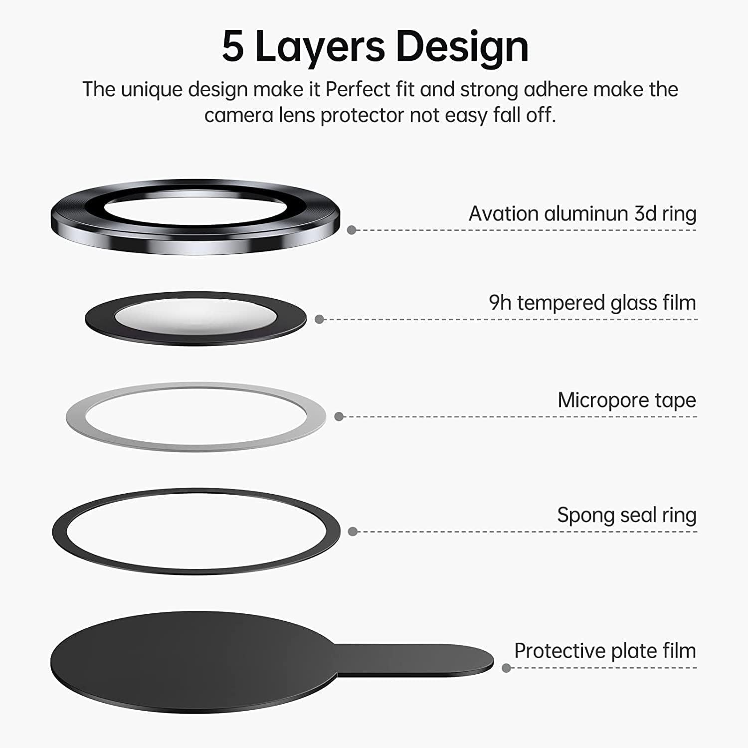 Película Protetora Lente Enfeite Câmera Compatível com iPhone 14 Pro iPhone 14 Pro Max (Prata Comum)