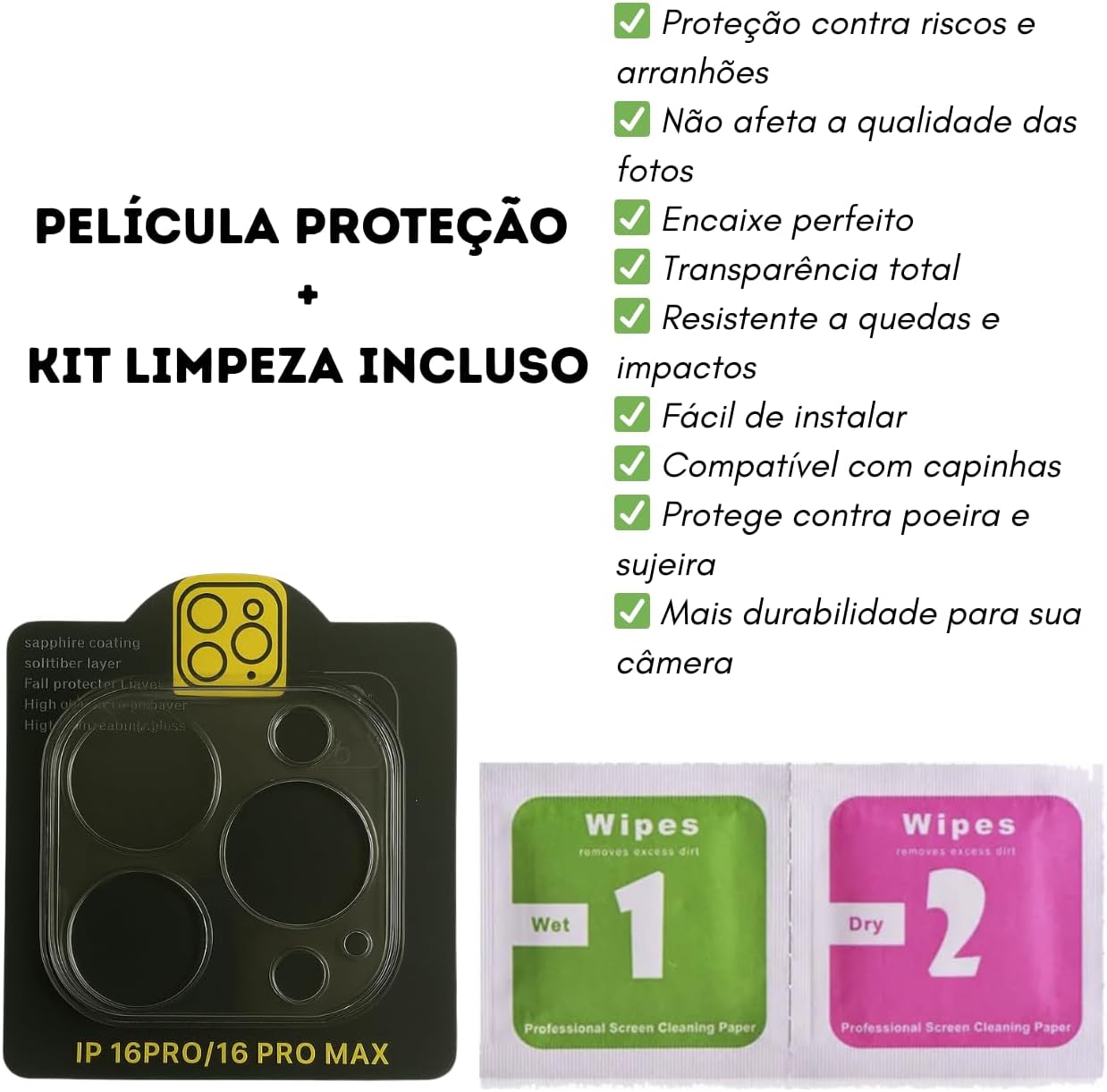 COMPATIBILIDADE: Projetada especificamente para iPhone 16 Pro e iPhone 16 Pro Max, oferecendo proteção precisa para as lentes da câmera