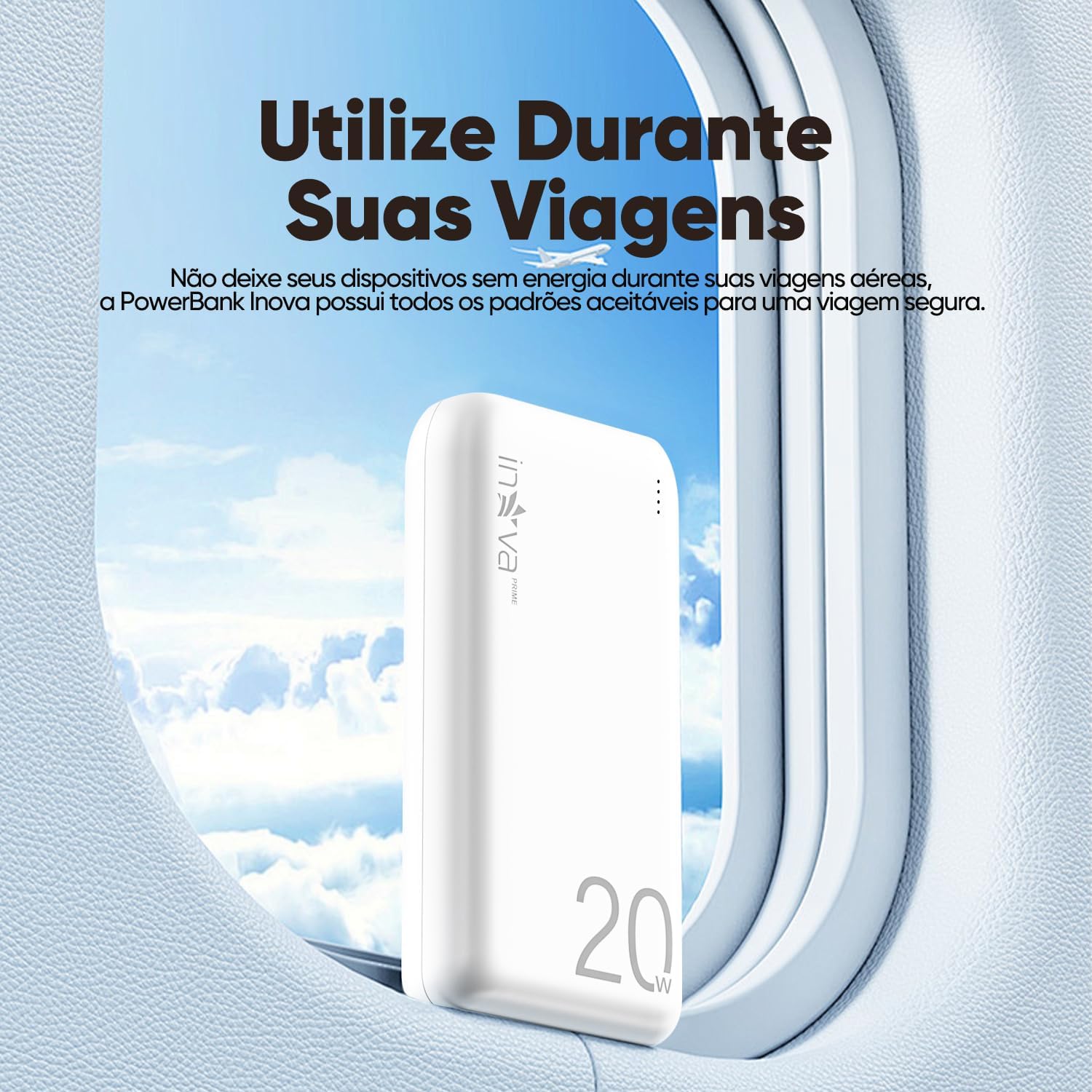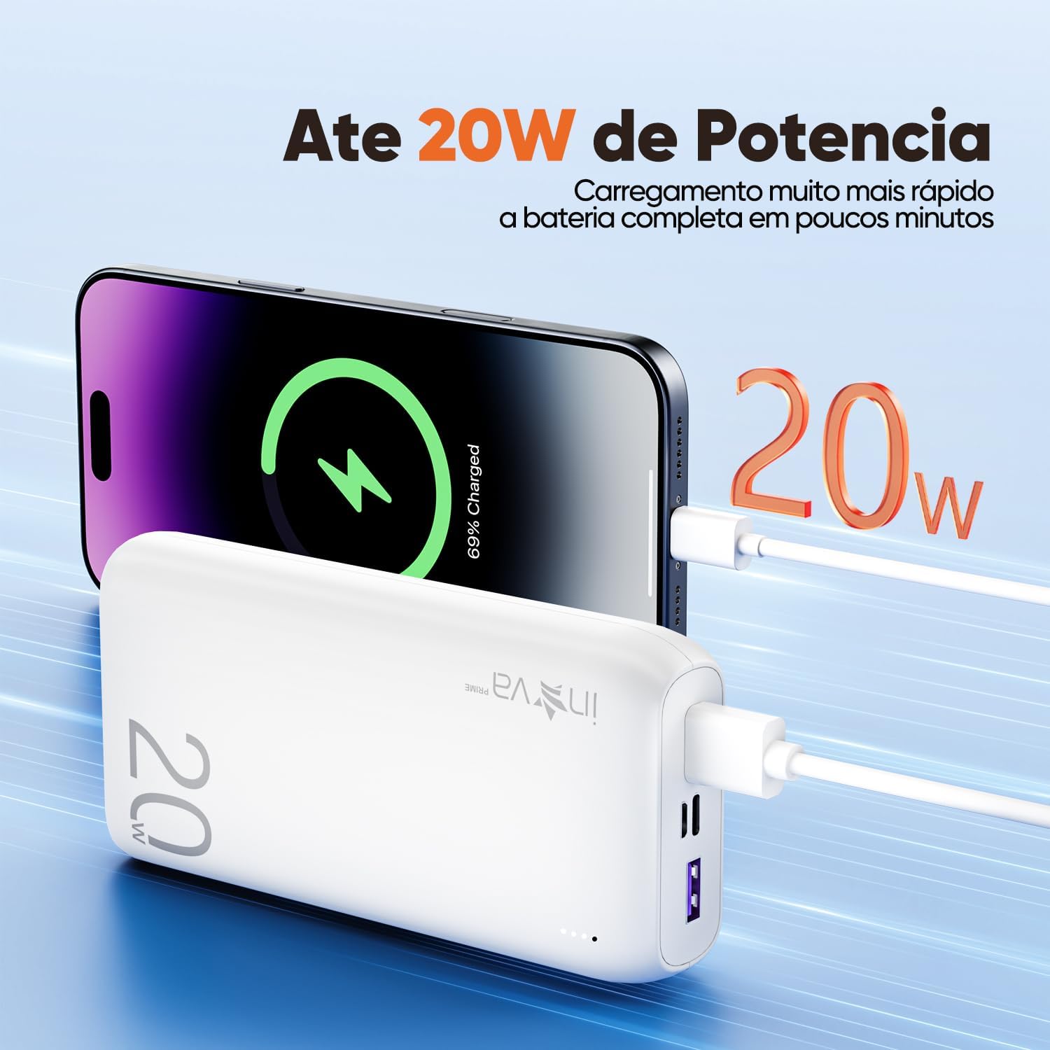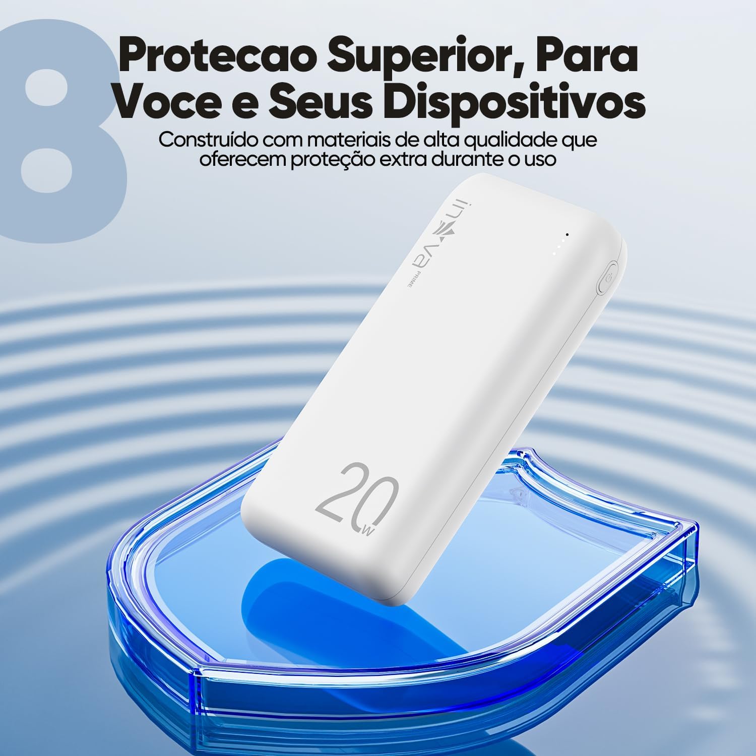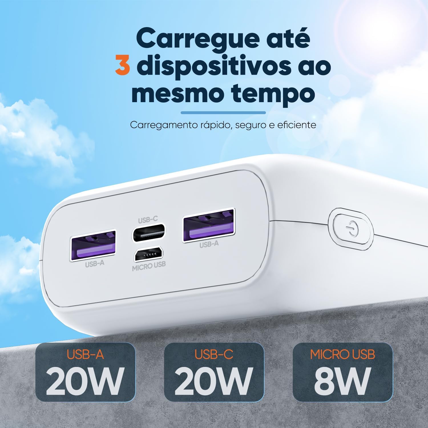 Capacidade Extra Grande de 20000mAh – Ideal para longas viagens e uso diário, carrega várias vezes seus dispositivos móveis, como smartphones e tablets.