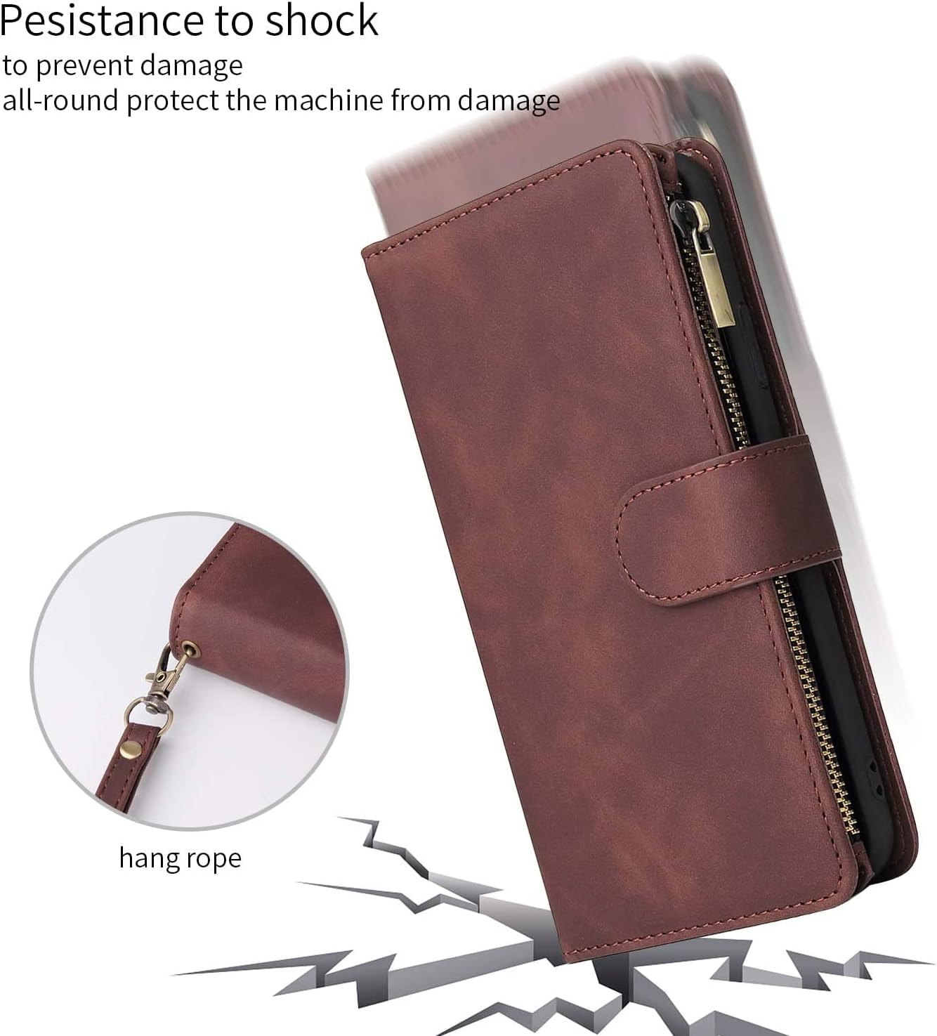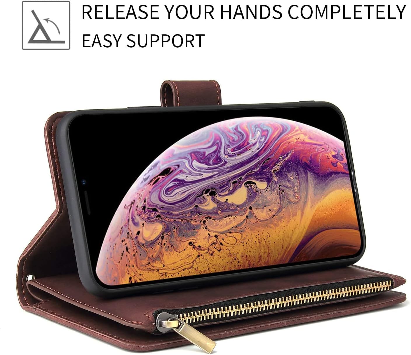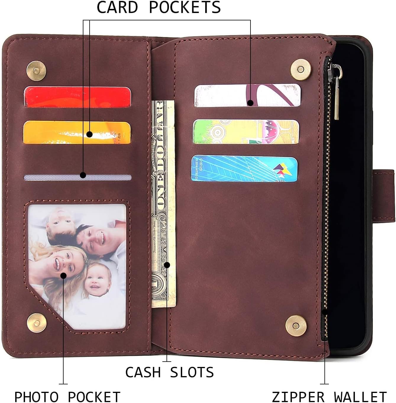 【 Compartimentos para cartão e fecho magnético】 Esta capa carteira inclui 5 compartimentos para cartões, 1 compartimento visível para identidade e 3 bolsos com zíper, para que você possa não apenas carregar sua identidade/cartões de crédito/débito, carteira de motorista, pouco dinheiro, mas também pequenas notas e fones de ouvido sem t # # #