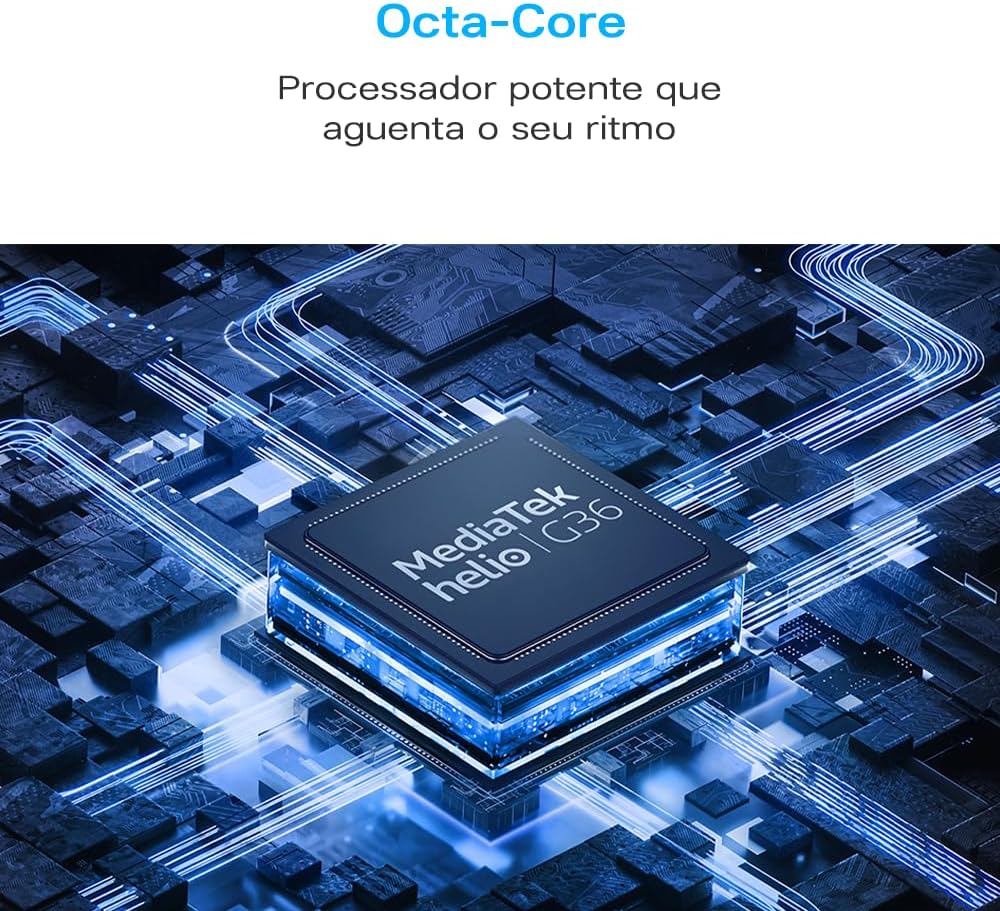 Helio G36 processador Octa Core oferece desempenho eficiente para dispositivos móveis, otimizando tarefas e proporcionando uma experiência fluida;