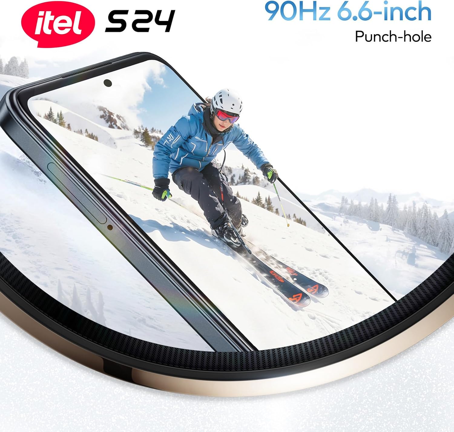 Tela HD+ de 6.6″ e 90 Hz: o celular itel S24 oferece uma experiência visual ampla e envolvente, com uma tela maior que proporciona imagens vívidas e de alta qualidade