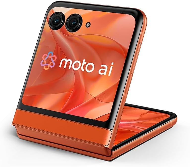 Smartphone Motorola Razr 50-512GB 24GB (12GB RAM+12GB Ram Boost) Tela dobrável 6,9″ pOLED e externa 3,6” Moto AI camera IPX8 – Orange Vegan Leather
