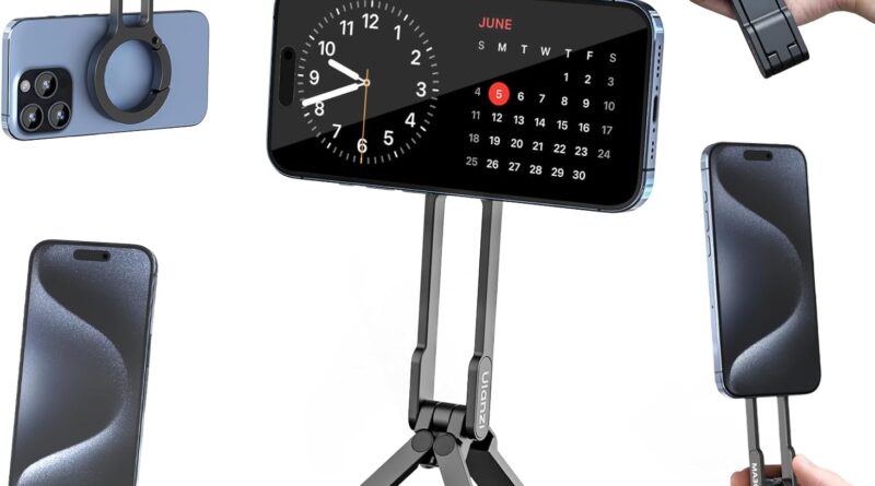 ULANZI MA30 Magnetic Phone Tripod Stand for iPhone – Aluminium Maglock Smartphone Mini Tripod Pocket Cell Phone Stand Dual-Sided Magnet Quick Mount