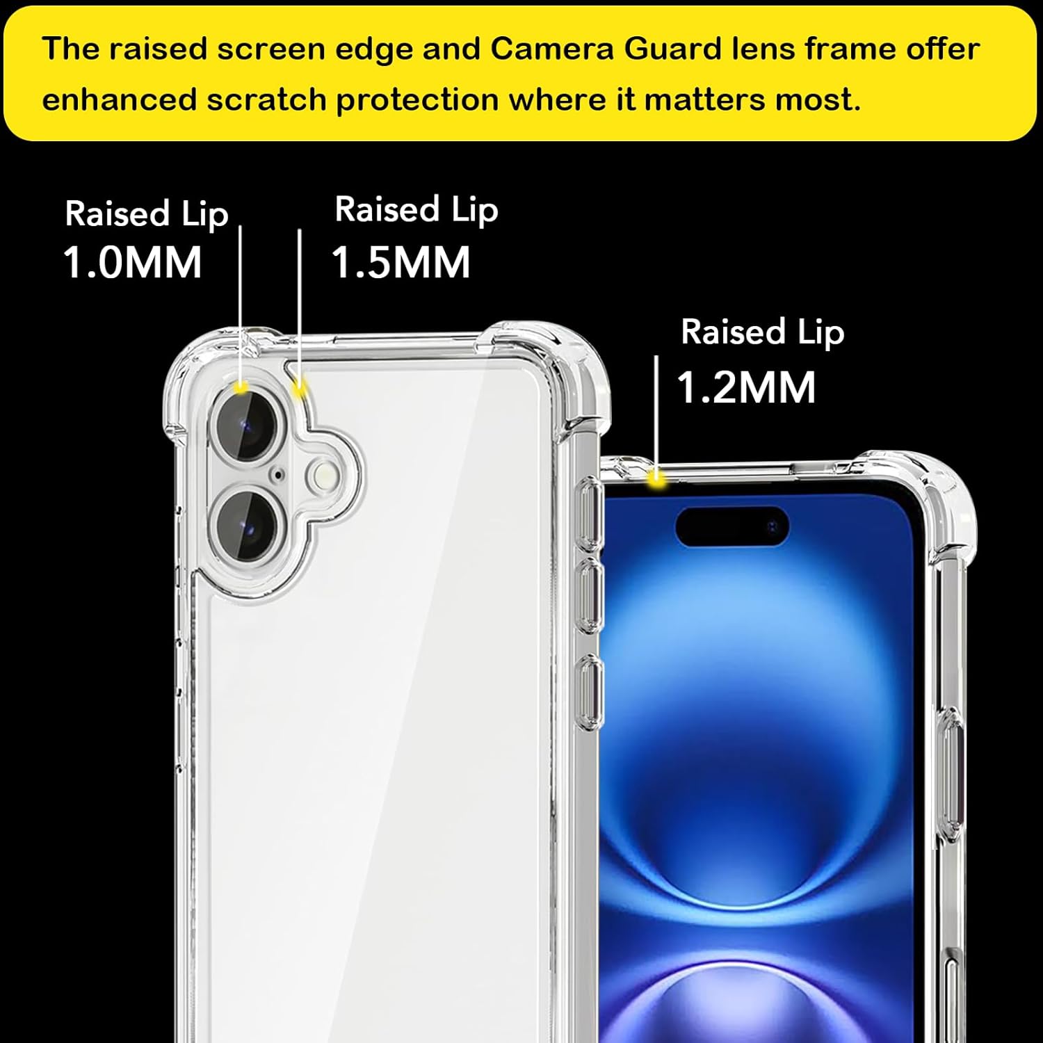As bordas elevadas e as bordas da câmera protegem a tela e a câmera, oferecendo mais proteção para o iPhone 16 6,1 polegadas