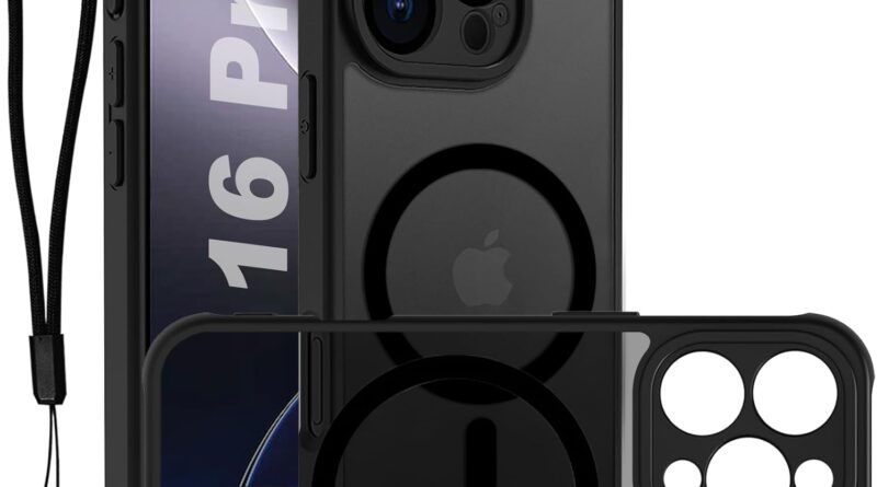 USTIYA Magnética Capa para iPhone 16 Pro 6,3 polegadas Case Matte Acrílico Uso Resistente Protetora de Câmera Capinha Acessórios para Celular com Cordão Preto FGCX
