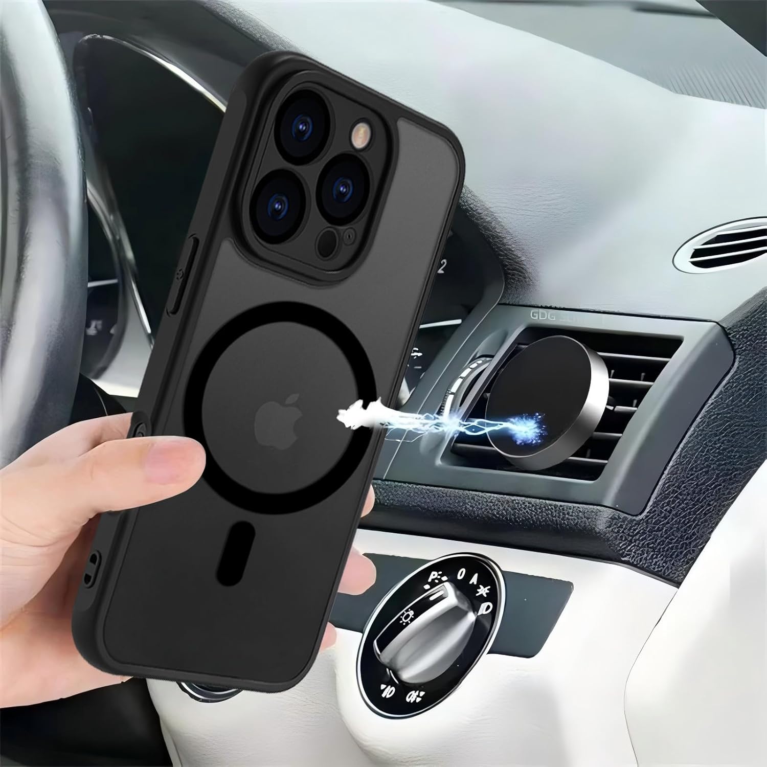 Capa compatível com carregamento sem fio e proteção para a câmera.
