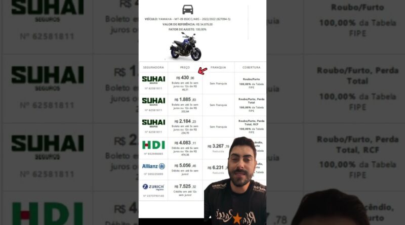 Valor do Seguro para moto MT09 Link para cotar seu seguro na bio