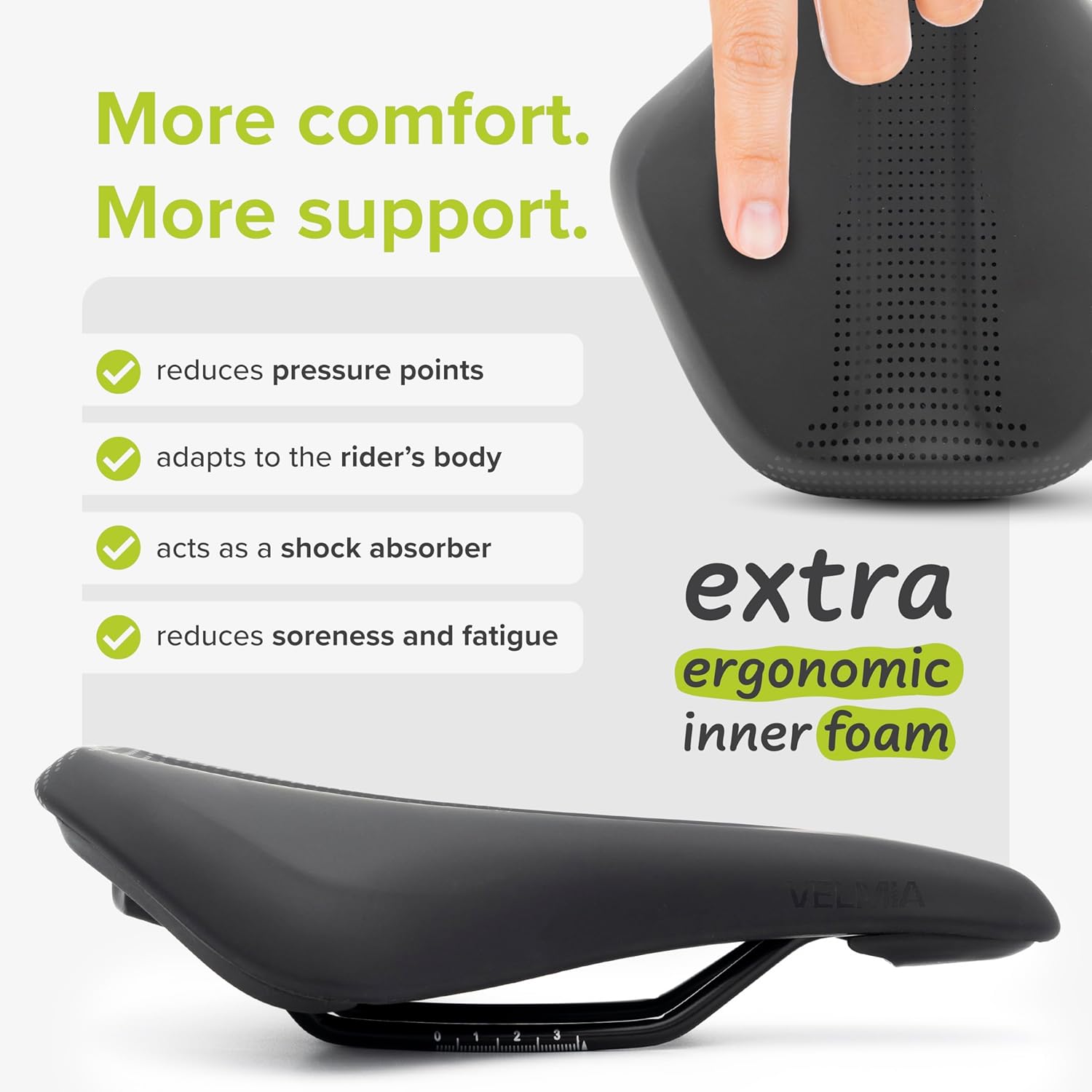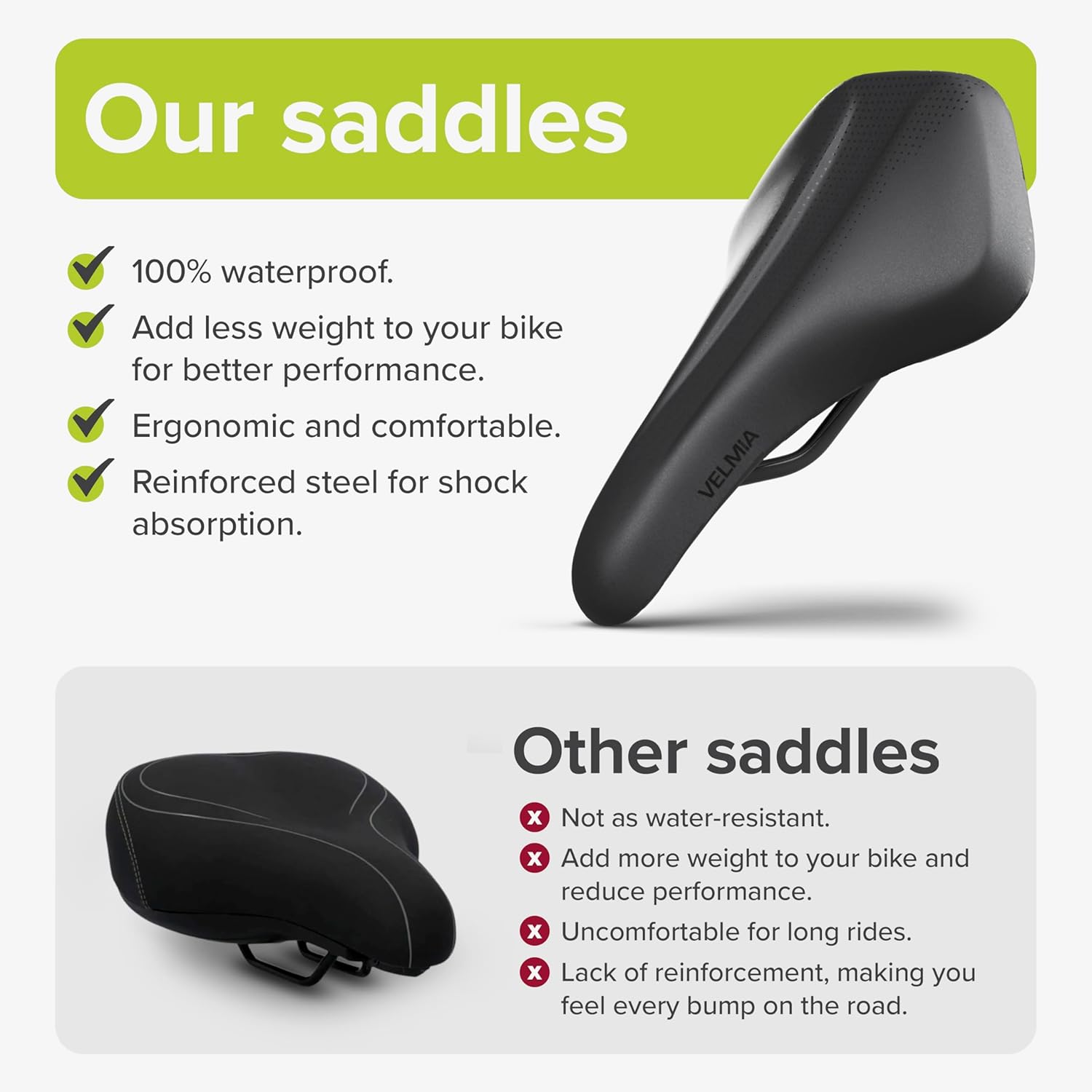 VELMIA Bike Seat 100% Waterproof I Bicycle Seat with Ergonomic Design – Bike Seats for Men and Women – Perfect for Trek Bikes & Peloton I Mountain Bike seat, Bike Saddle