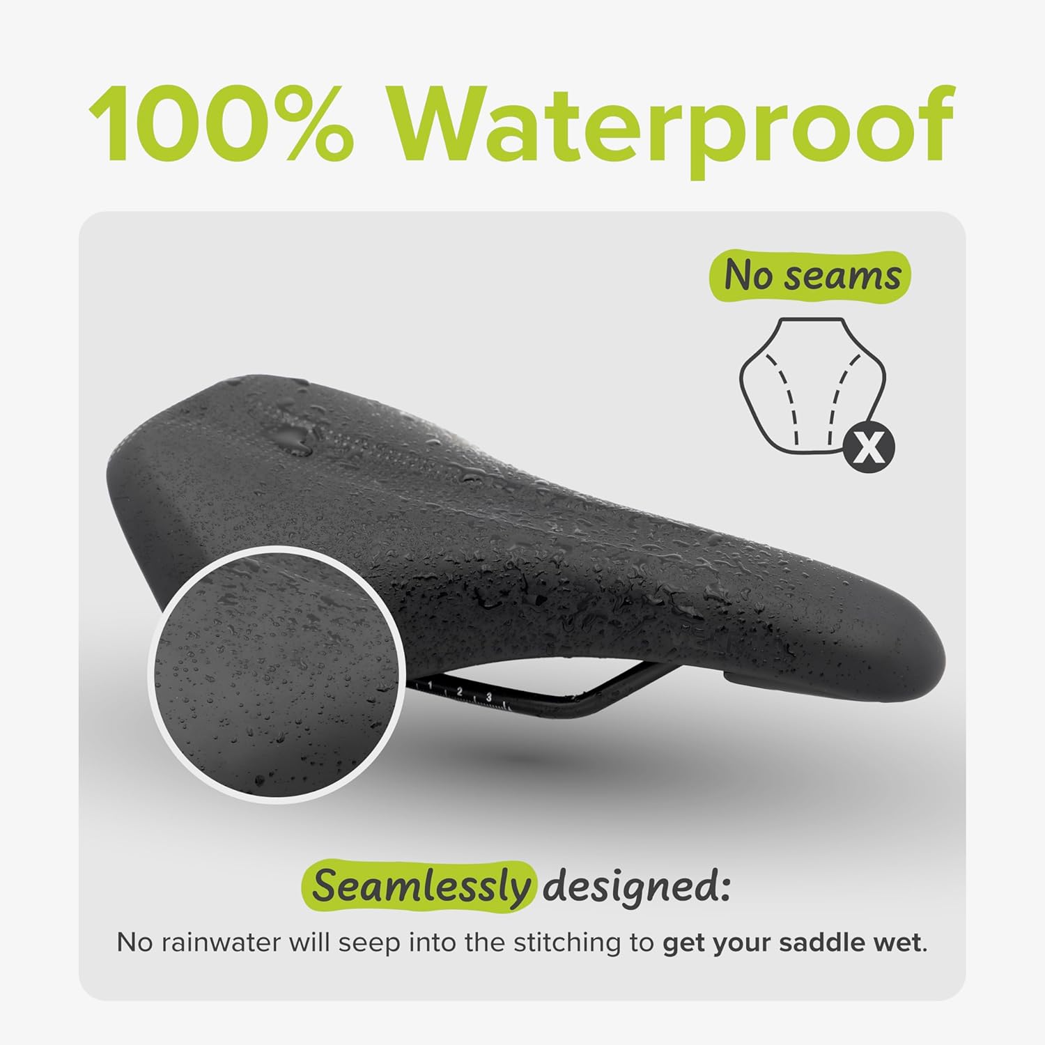 100% WATERPROOF: Never worry about the weather again! Our saddle stays dry and protected, rain or shine.